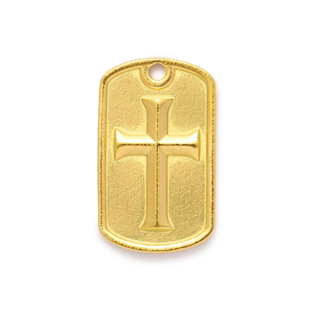 Pendentifs en acier inoxydable, Acier inoxydable 304, rectangle, avec crosse modèle & avec le motif de lettre, couleur originale Environ Vendu par PC