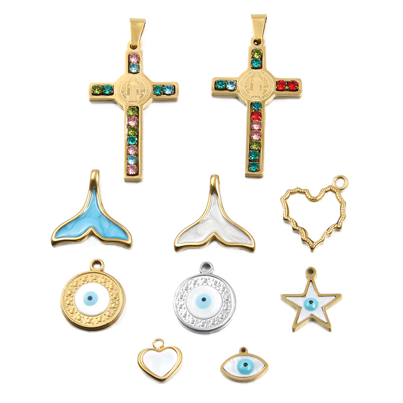 Pendentifs en acier inoxydable, Acier inoxydable 304, Placage ionique sous vide, Forme différente pour le choix & DIY & émail & avec strass, plus de couleurs à choisir, 10PC/sac, Vendu par sac