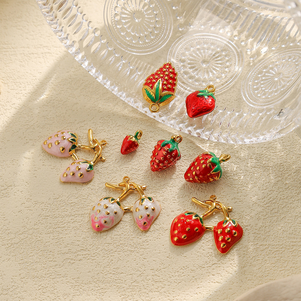 Pendentifs en acier inoxydable, Acier inoxydable 304, fraise, Placage de couleur d'or, DIY & émail, plus de couleurs à choisir, Vendu par PC