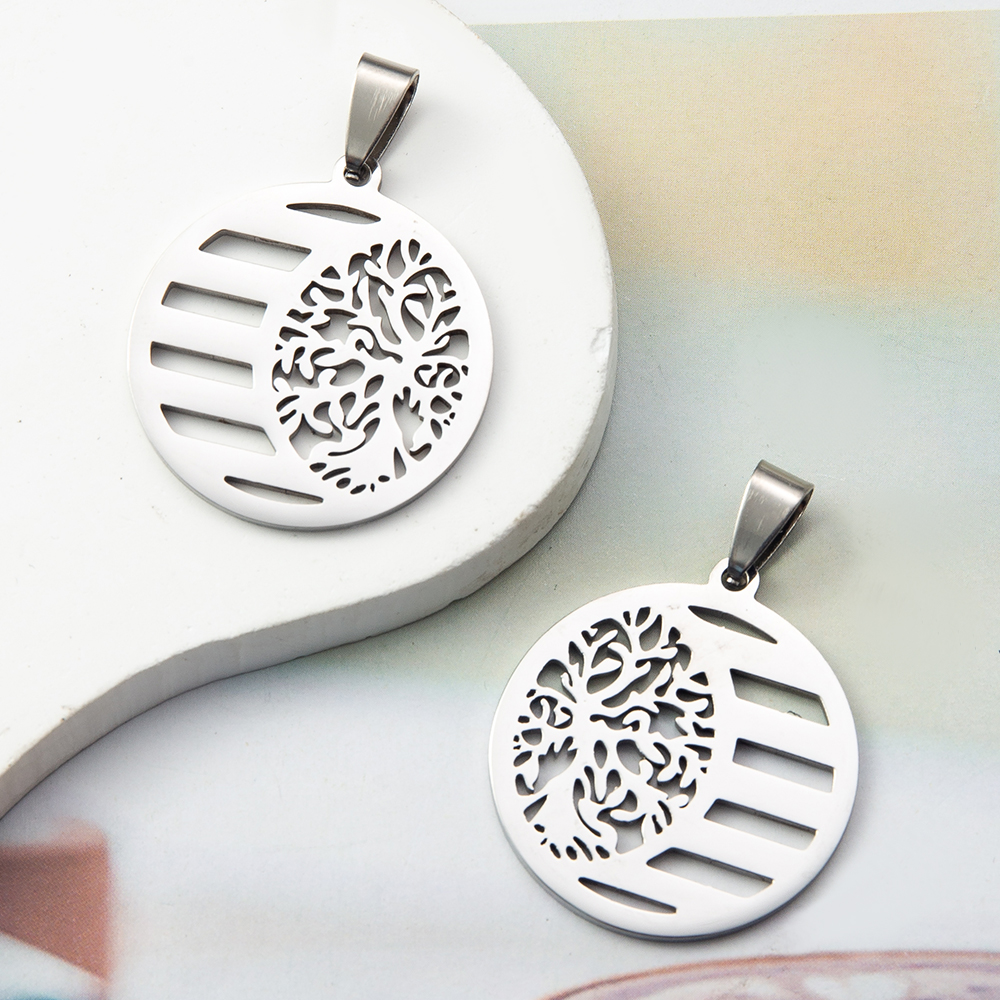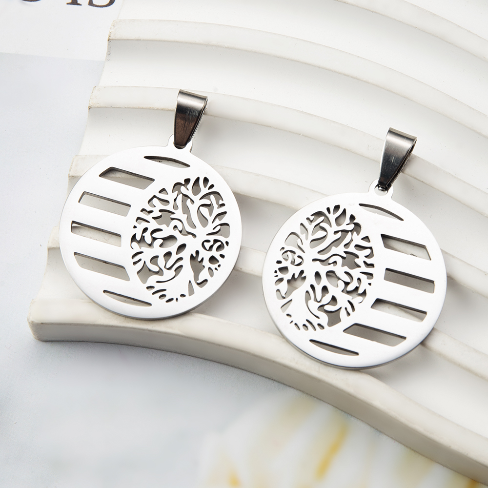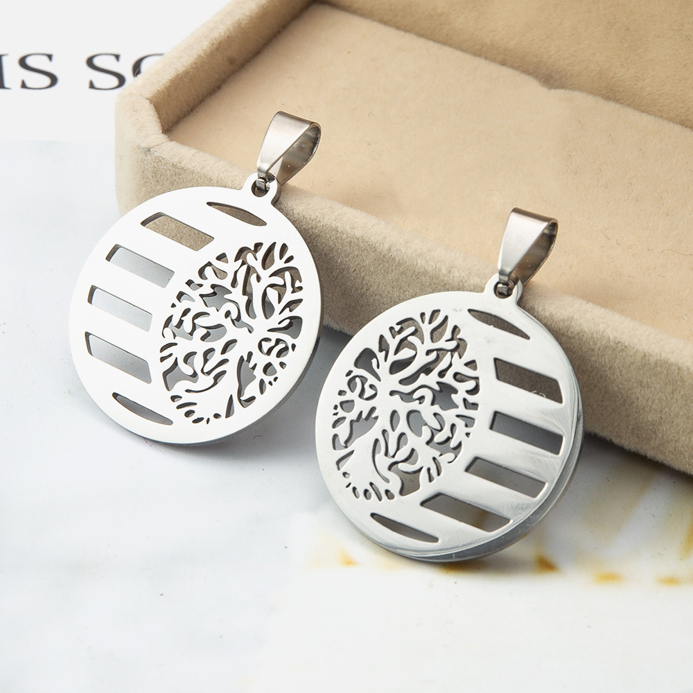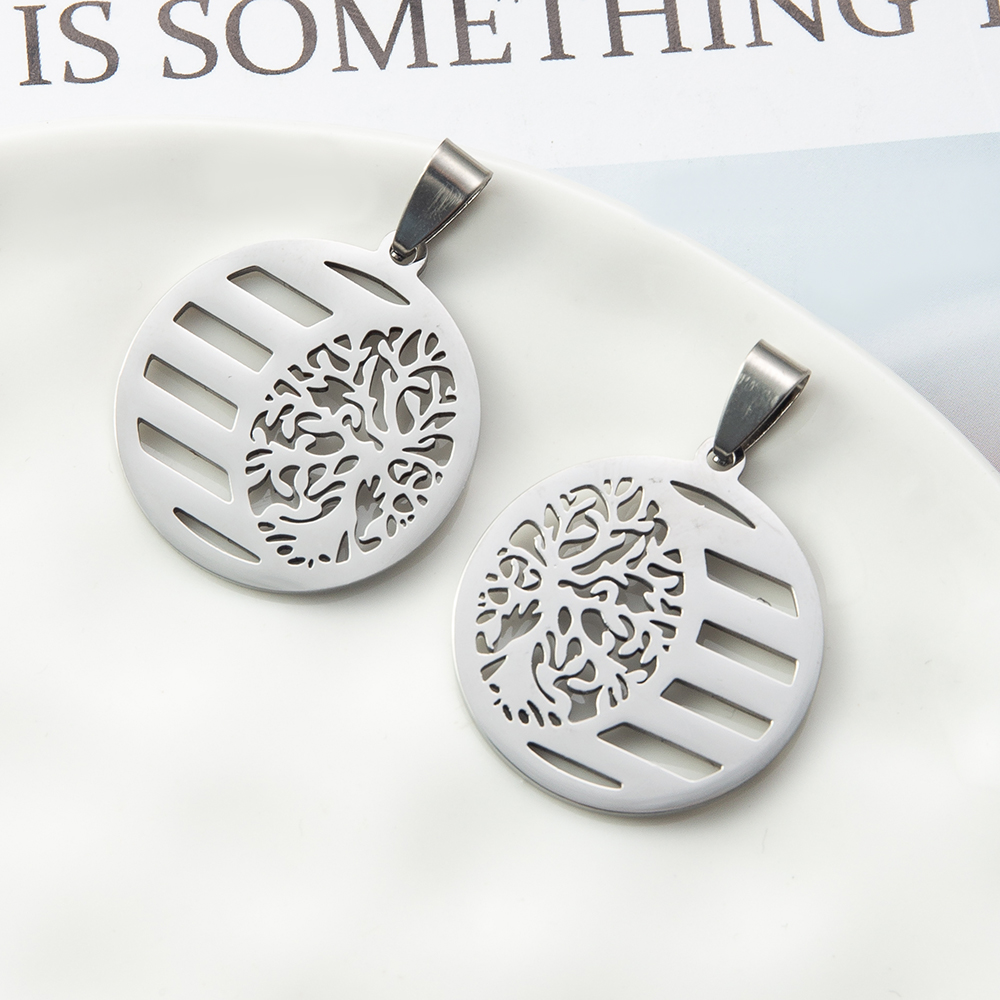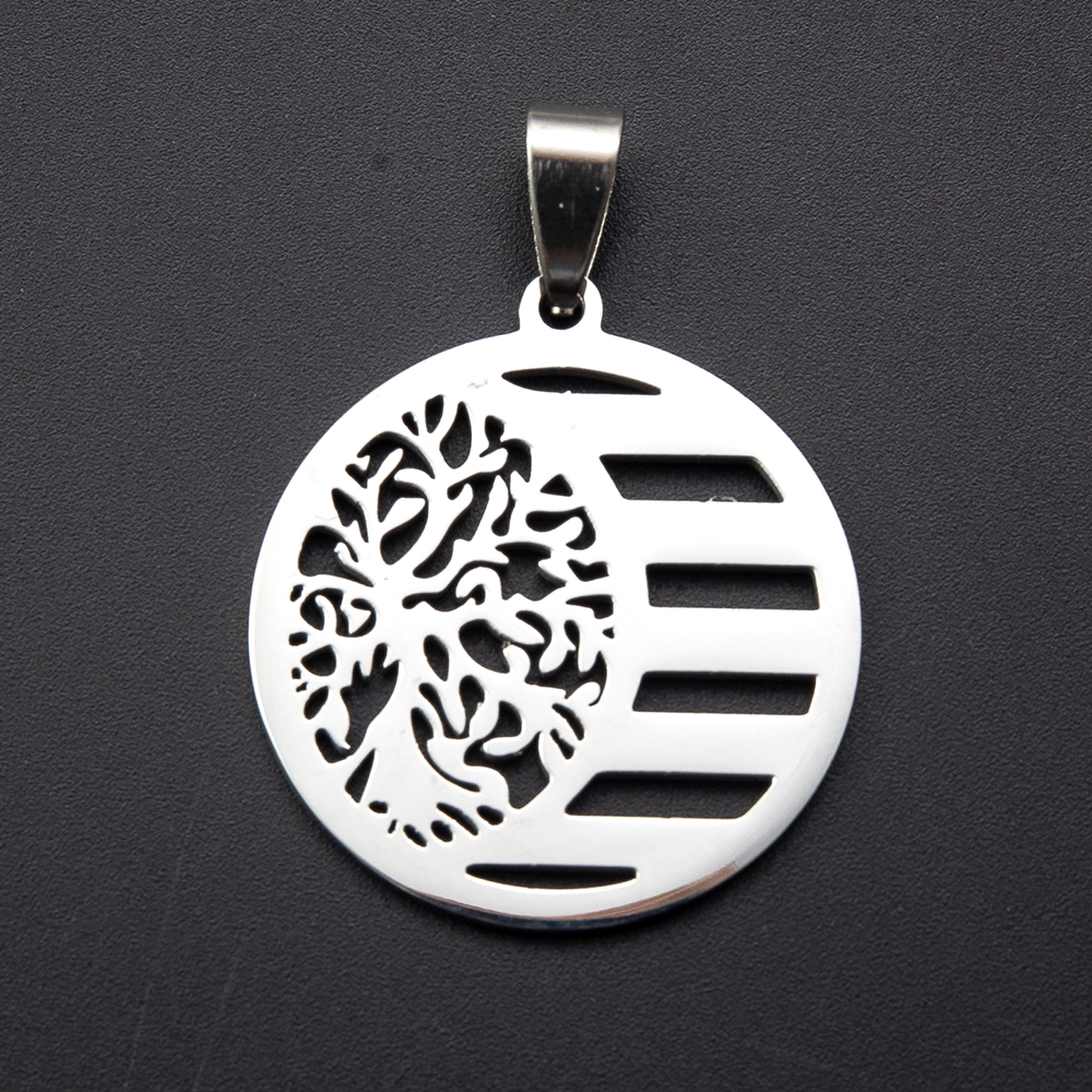 Pendentifs en acier inoxydable, Rond, arbre de la conception de la vie, couleur originale Vendu par PC