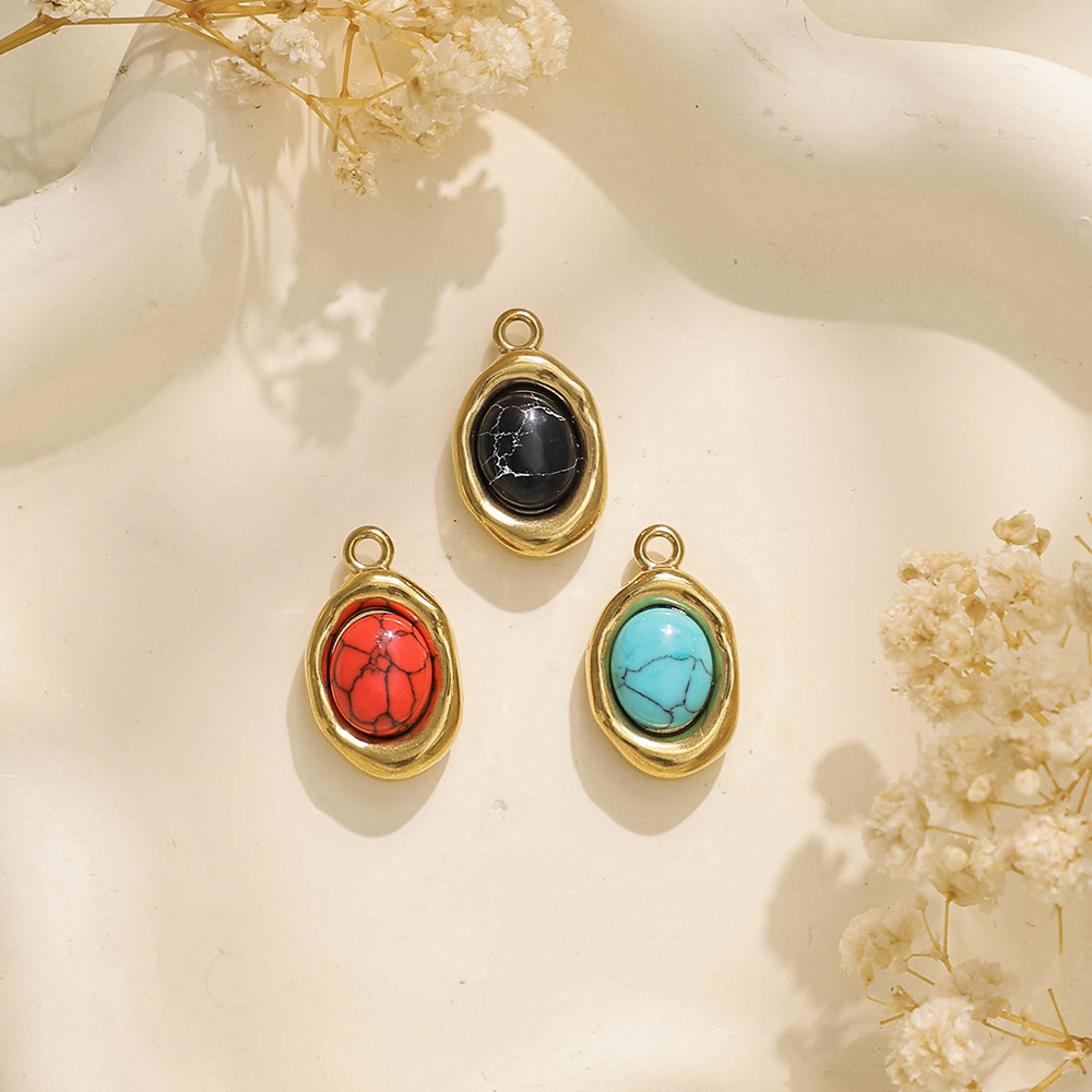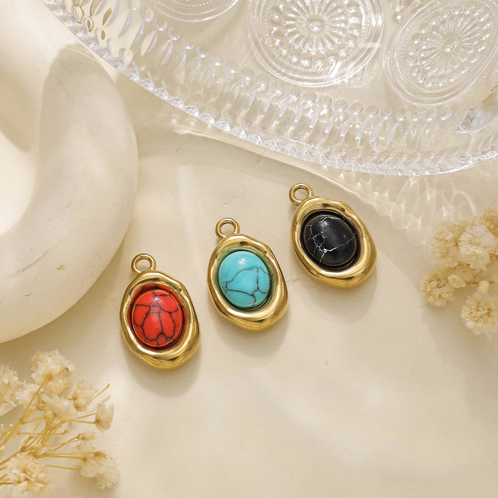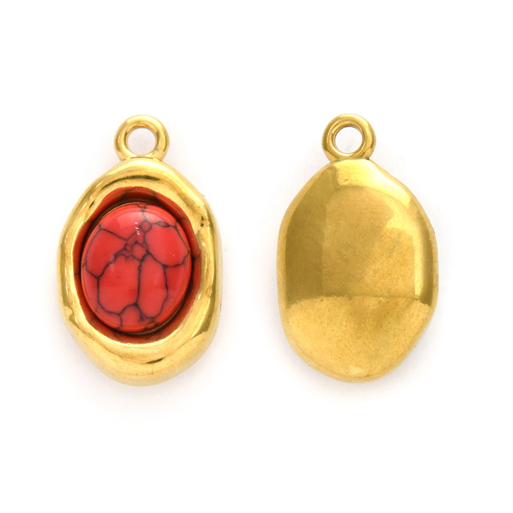 Pendentifs en acier inoxydable, Acier inoxydable 304, avec turquoise synthétique, Rond, Placage, DIY, plus de couleurs à choisir, 10PC/sac, Vendu par sac