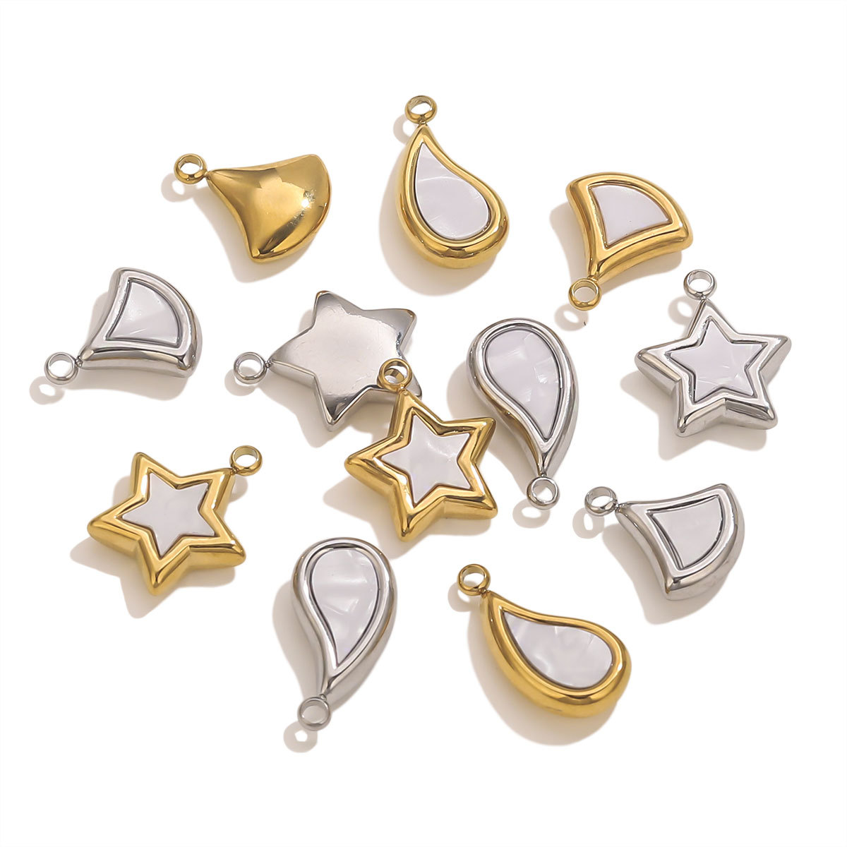 Pendentifs en acier inoxydable, Acier inoxydable 304, avec coquille blanche, Placage ionique sous vide, DIY & styles différents pour le choix, plus de couleurs à choisir, 5PC/sac, Vendu par sac