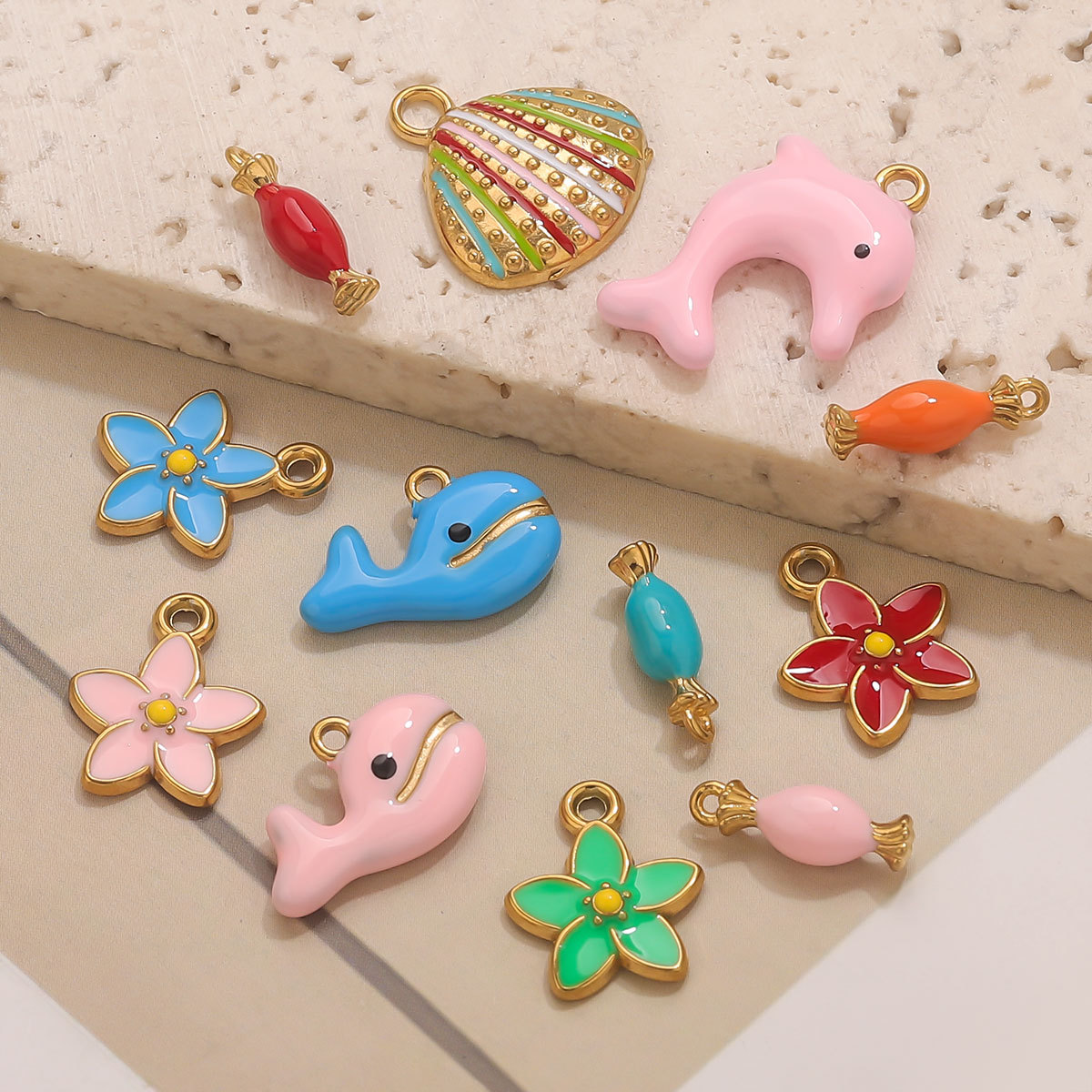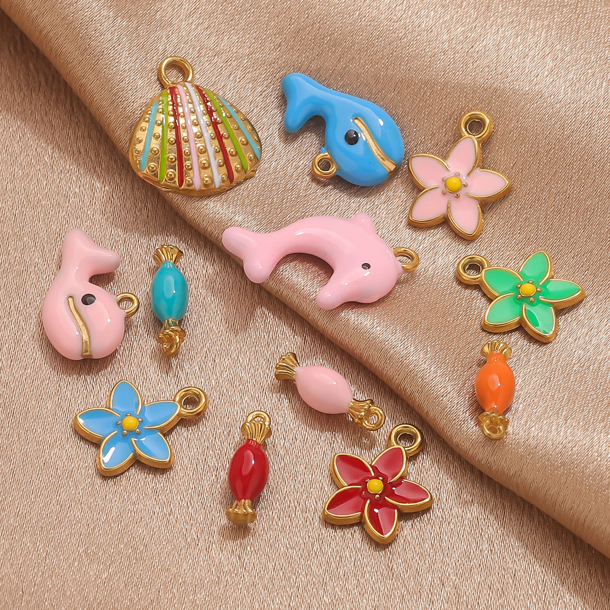 Pendentifs en acier inoxydable, Acier inoxydable 304, Placage de couleur d'or, DIY & styles différents pour le choix & émail, plus de couleurs à choisir, 3PC/sac, Vendu par sac