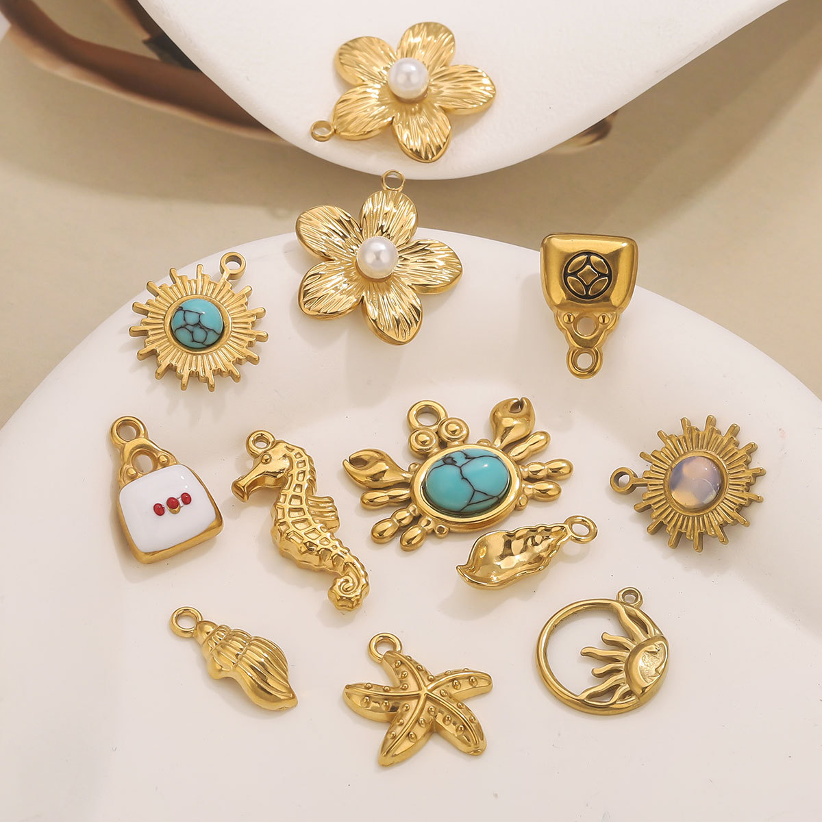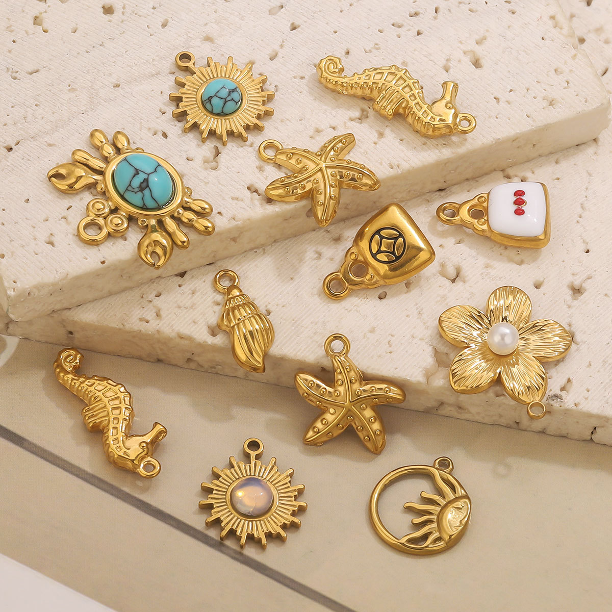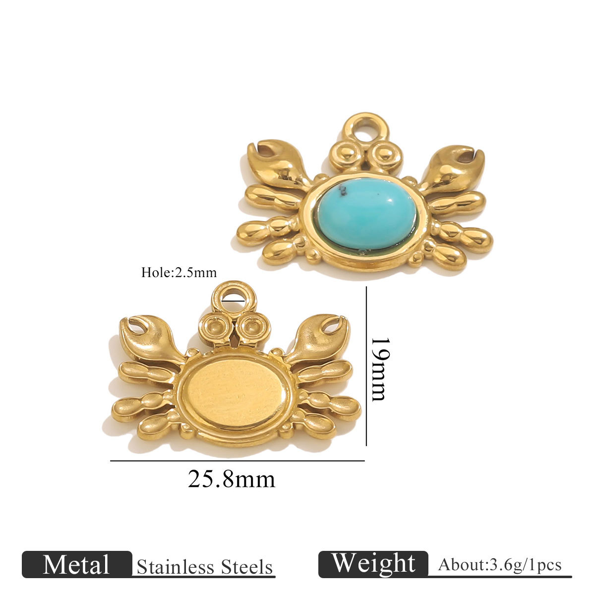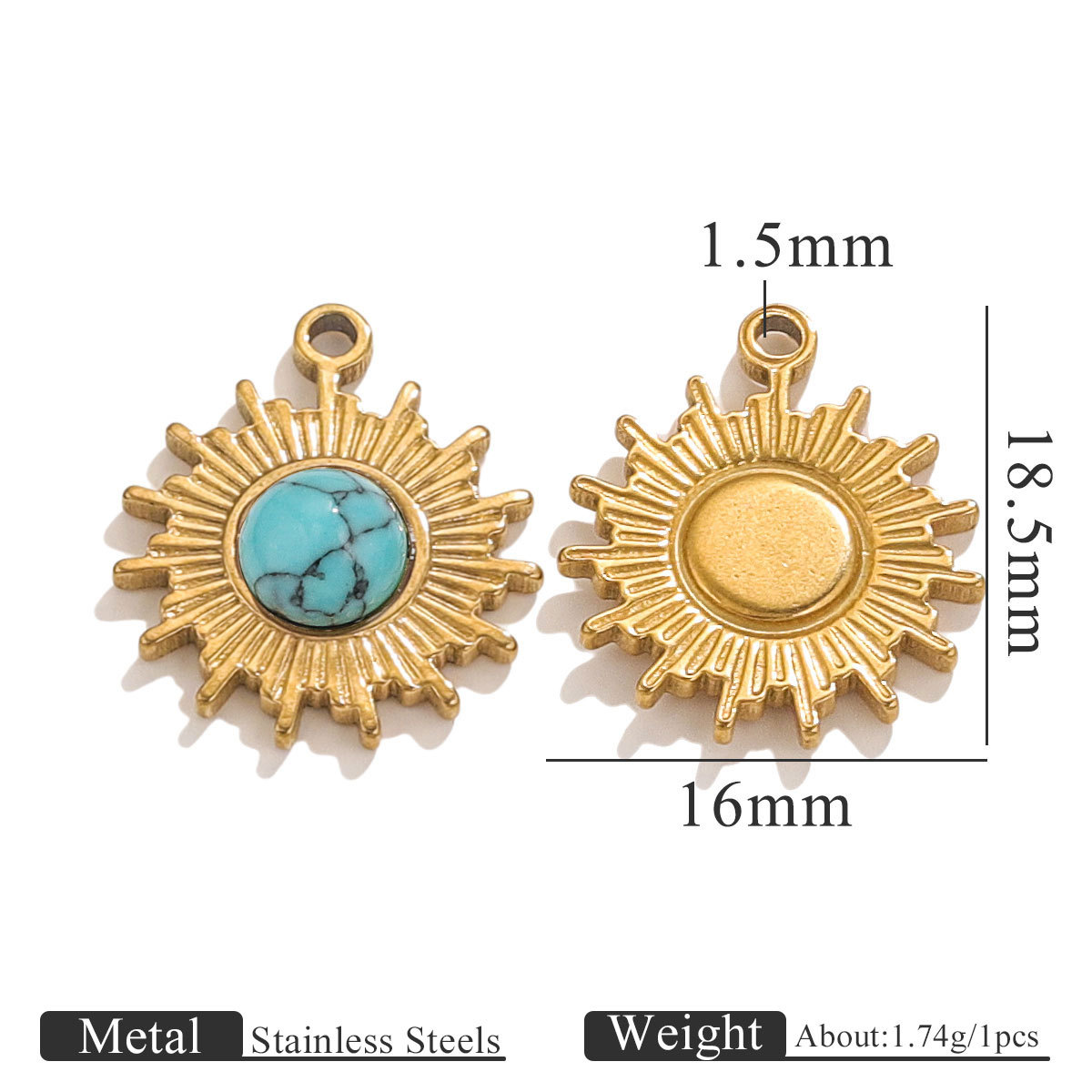 Pendentifs en acier inoxydable, Acier inoxydable 304, avec turquoise, Plaqué or 18K, DIY & styles différents pour le choix, Vendu par PC
