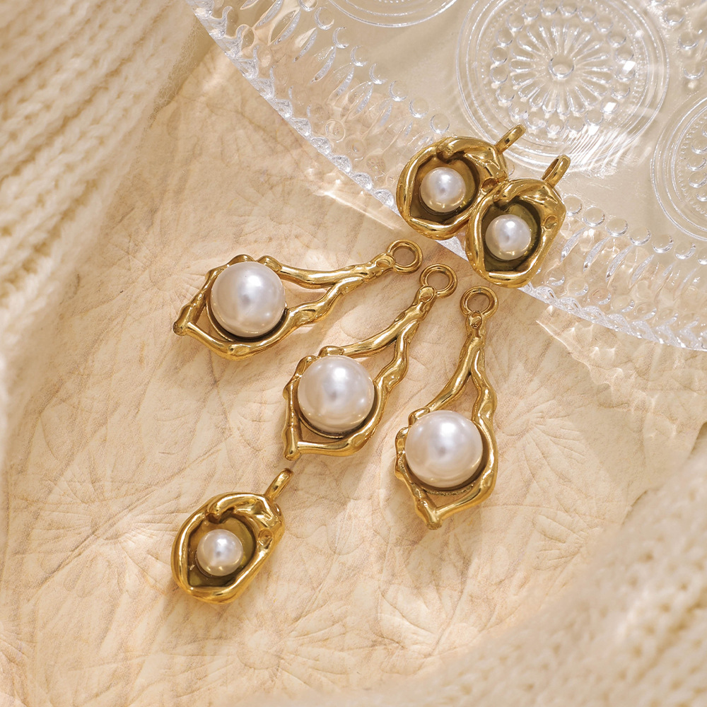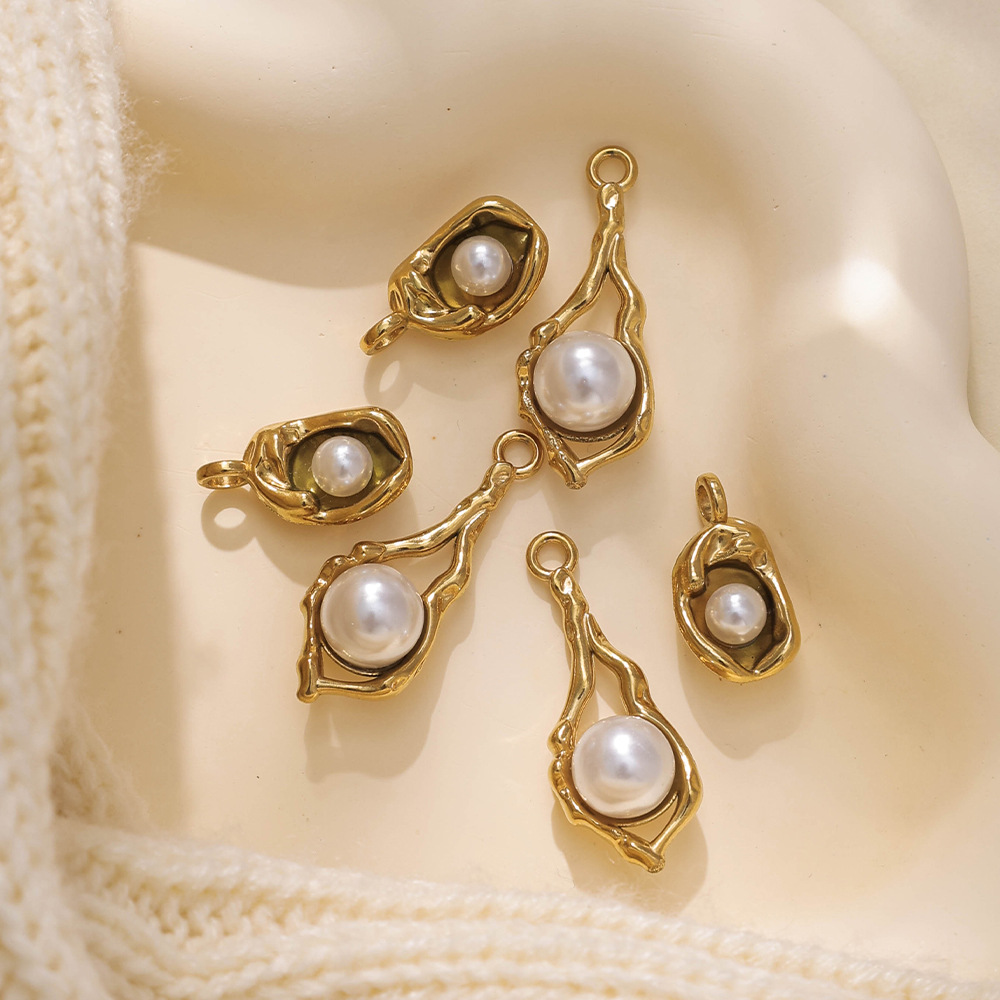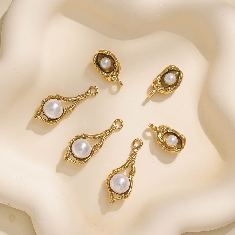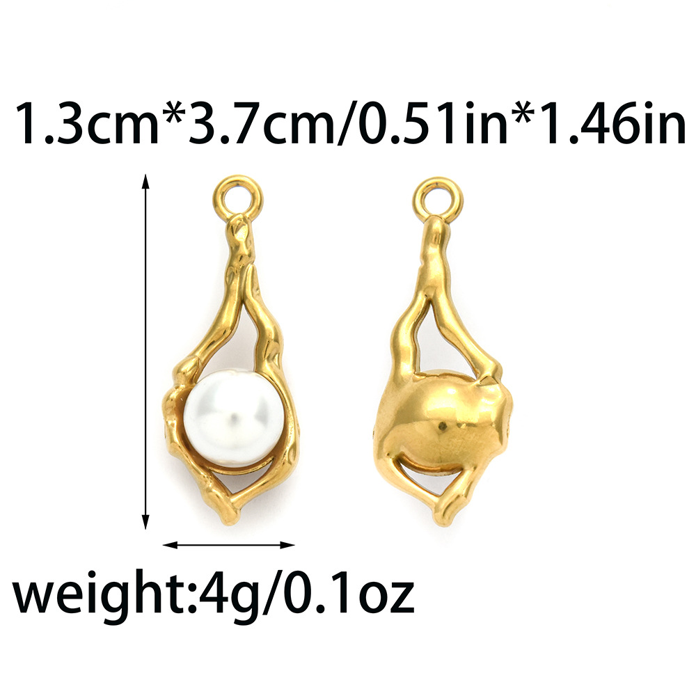 Pendentifs en acier inoxydable, Acier inoxydable 304, avec perle de plastique, Placage de couleur d'or, DIY, doré, 10PC/sac, Vendu par sac