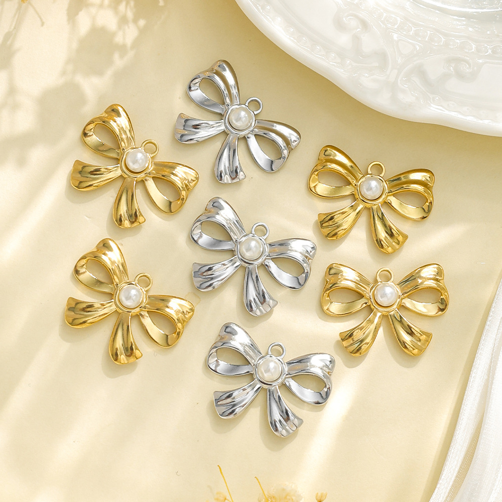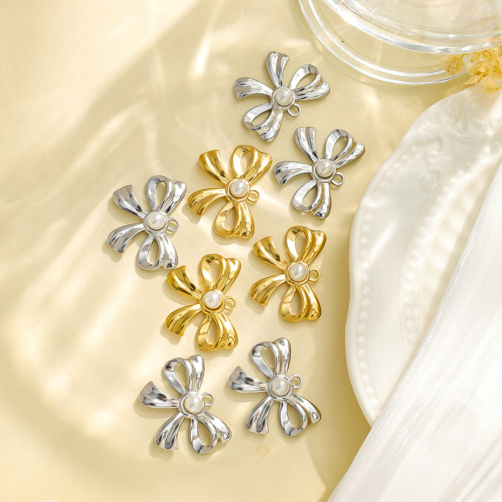 Pendentifs en acier inoxydable, Acier inoxydable 304, avec perle de plastique, Noeud papillon, Placage, DIY, plus de couleurs à choisir, 10PC/sac, Vendu par sac