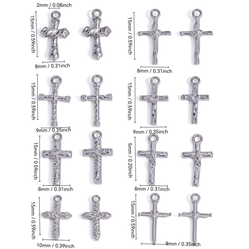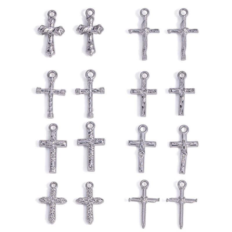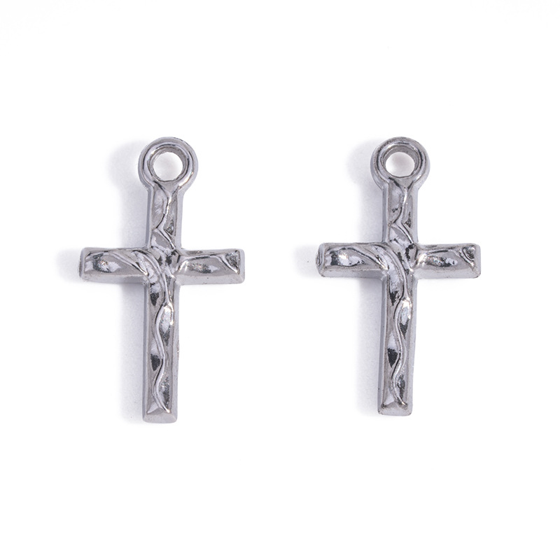Pendentifs en acier inoxydable, Acier inoxydable 304, croix, Placage, DIY, argent, 100PC/sac, Vendu par sac