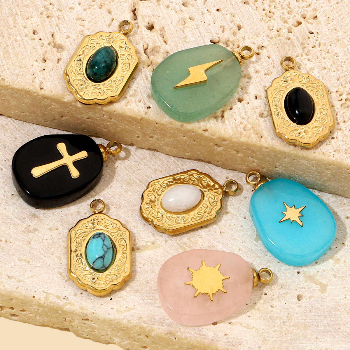 Pendentifs en acier inoxydable, Acier inoxydable 304, avec Pierre naturelle, Placage de couleur d'or, DIY & pavé de micro zircon, plus de couleurs à choisir, 3PC/sac, Vendu par sac