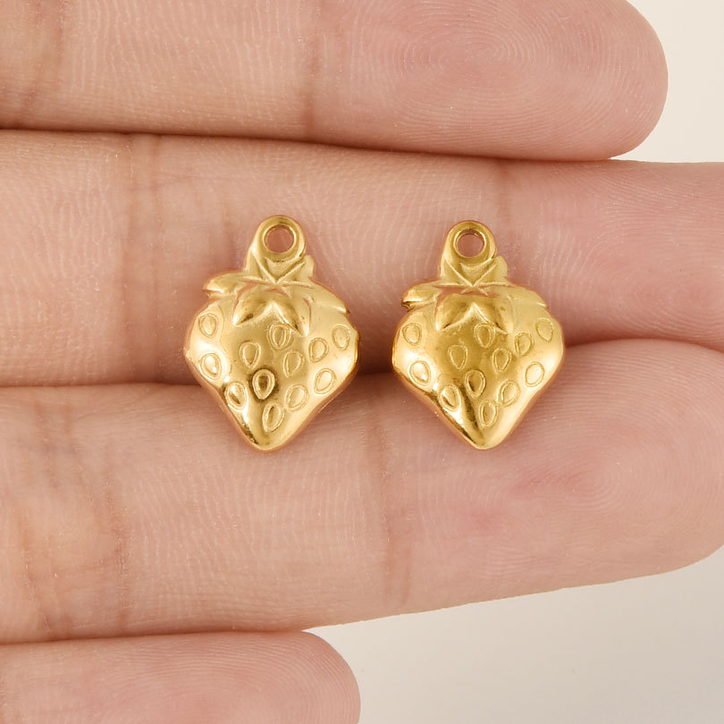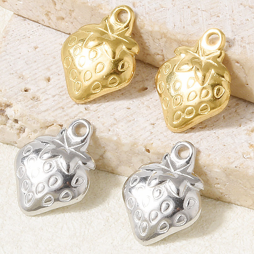 Pendentifs en acier inoxydable, Acier inoxydable 304, fraise, Placage, DIY, plus de couleurs à choisir, 15x11mm, 10PC/sac, Vendu par sac