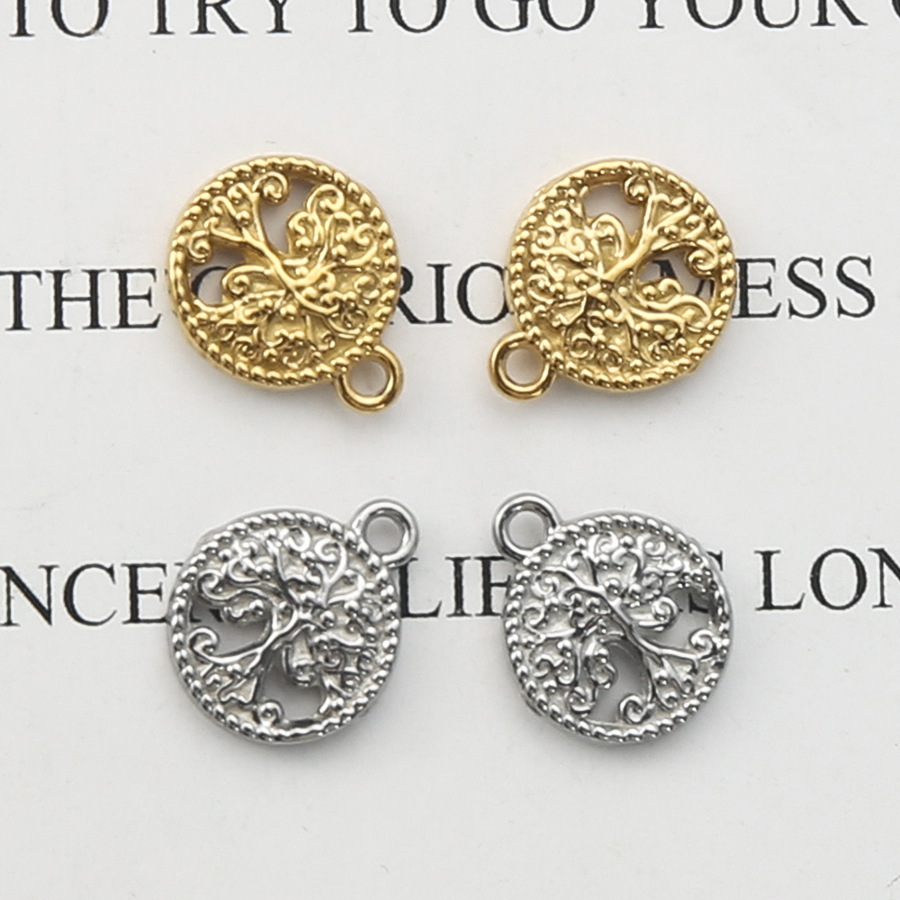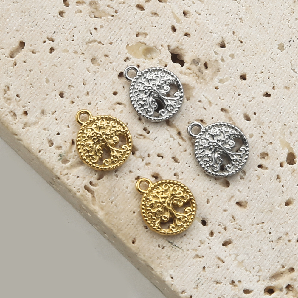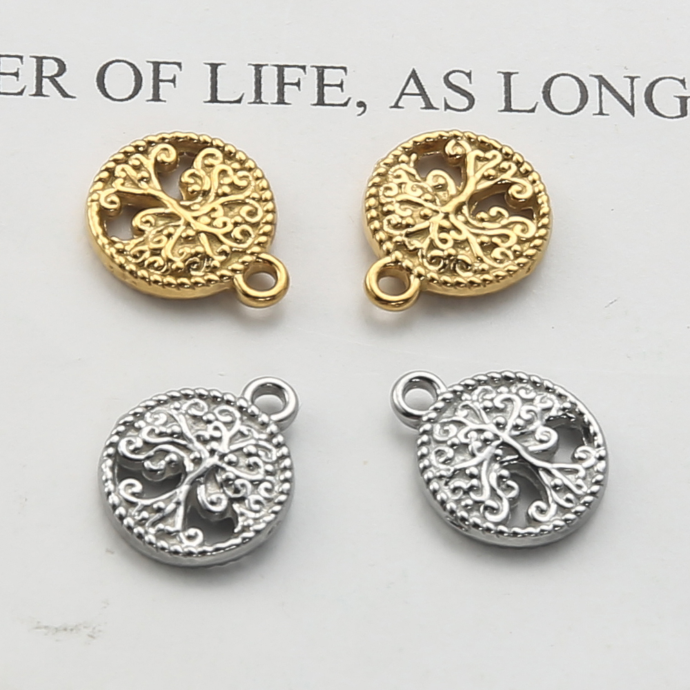 Pendentifs en acier inoxydable, Rond, arbre de la conception de la vie, couleur originale Vendu par PC