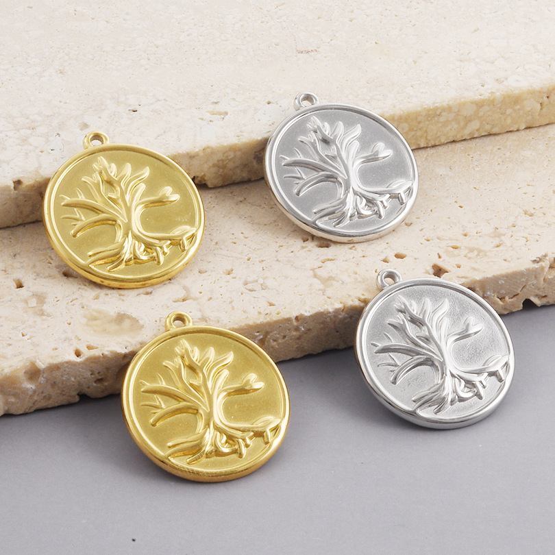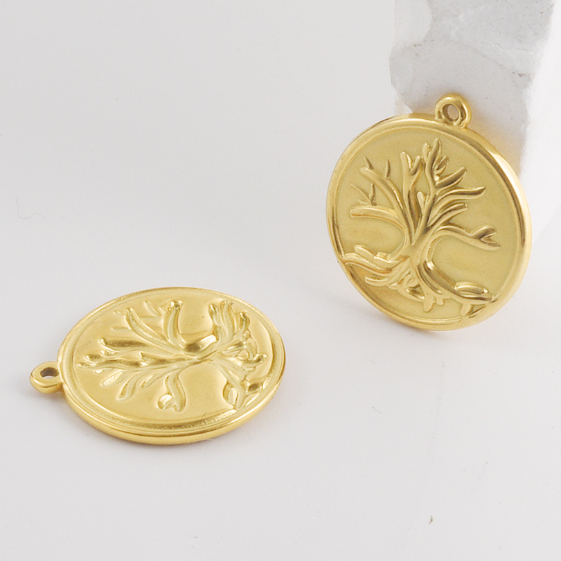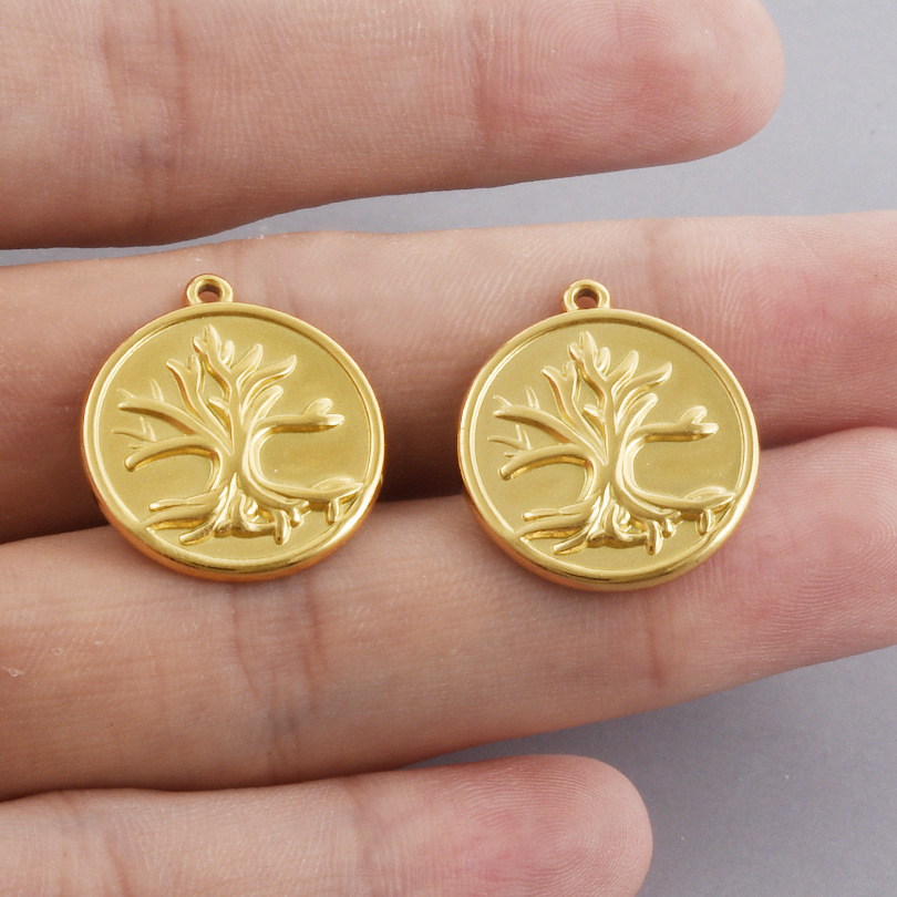 Pendentifs en acier inoxydable, Rond, arbre de la conception de la vie, couleur originale Vendu par PC
