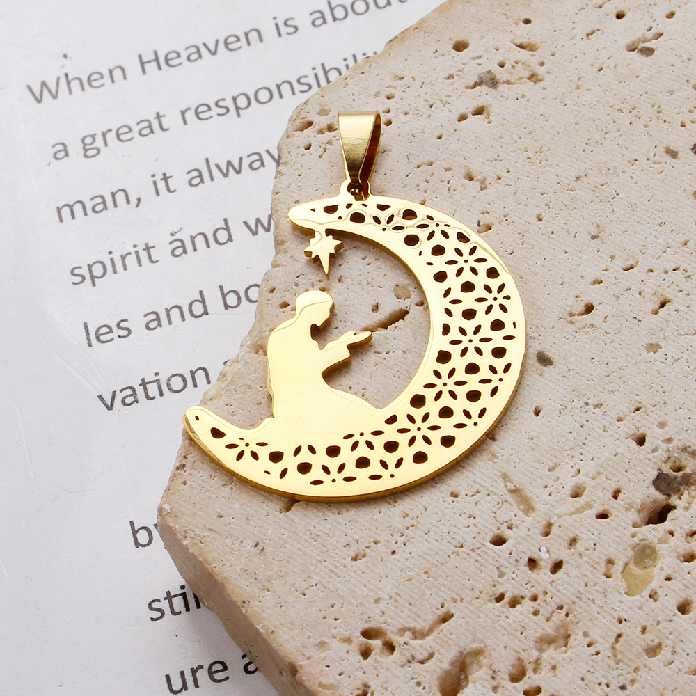 Pendentifs en acier inoxydable, Acier inoxydable 304, lune, Placage de couleur d'or, DIY, doré, 30.95x5.48x48.11mm, Vendu par PC
