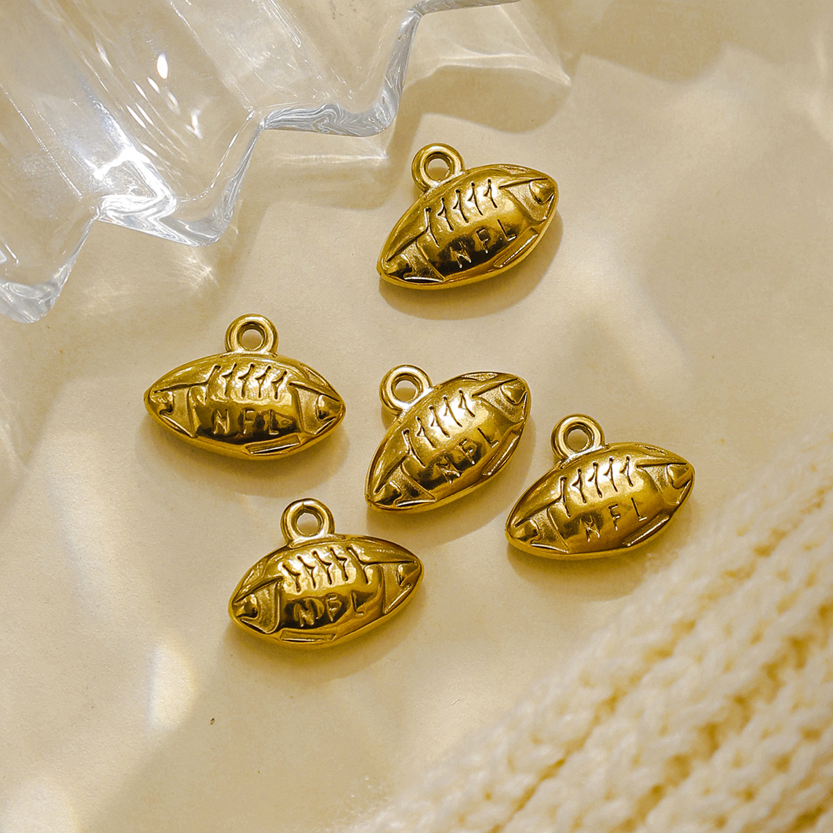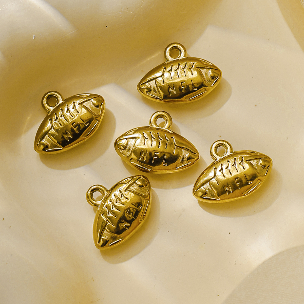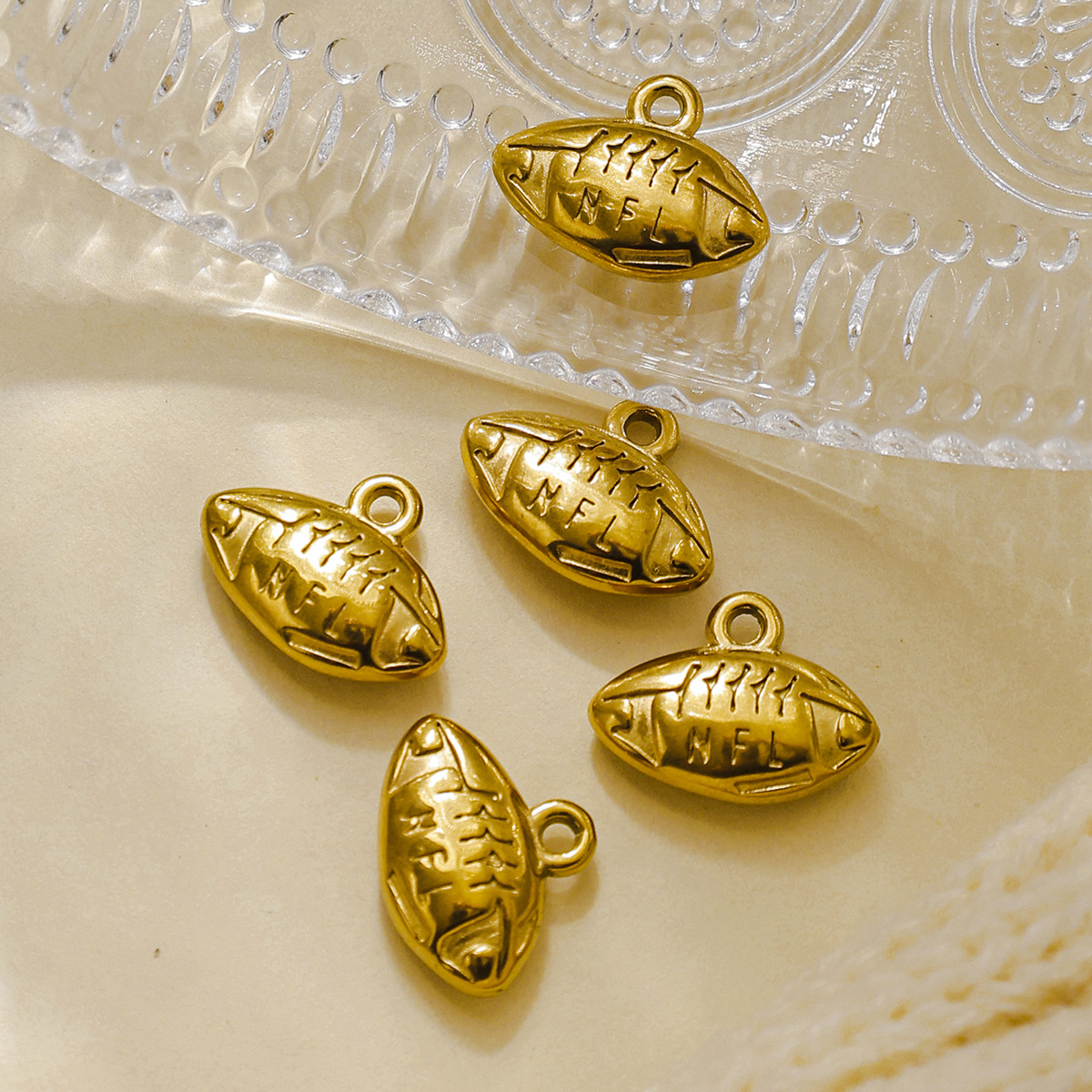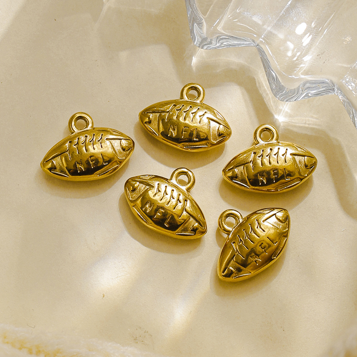 Pendentifs en acier inoxydable, Acier inoxydable 304, Ballon de rugby, Placage de couleur d'or, DIY, doré, 10PC/sac, Vendu par sac