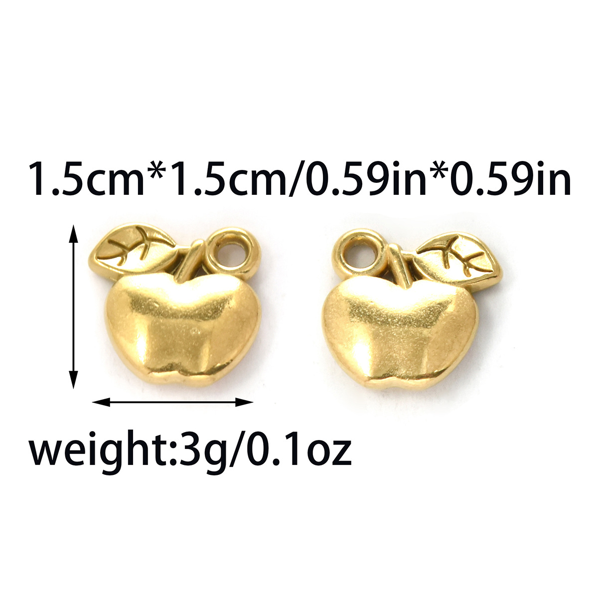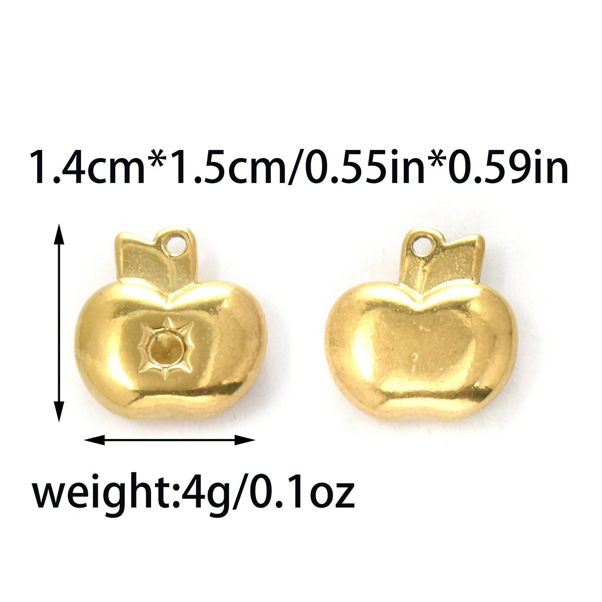 Pendentifs en acier inoxydable, Acier inoxydable 304, pomme, Placage de couleur d'or, DIY, doré, 10PC/sac, Vendu par sac