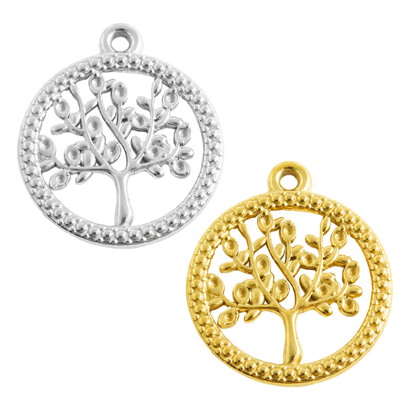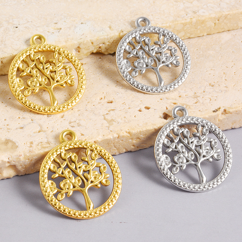 Pendentifs en acier inoxydable, Rond, arbre de la conception de la vie, couleur originale Vendu par PC