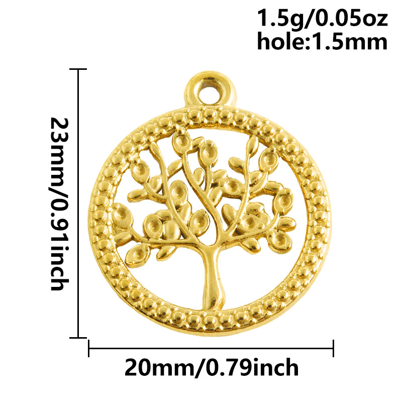 Pendentifs en acier inoxydable, Acier inoxydable 304, arbre, Placage, DIY & creux, plus de couleurs à choisir, 10PC/sac, Vendu par sac