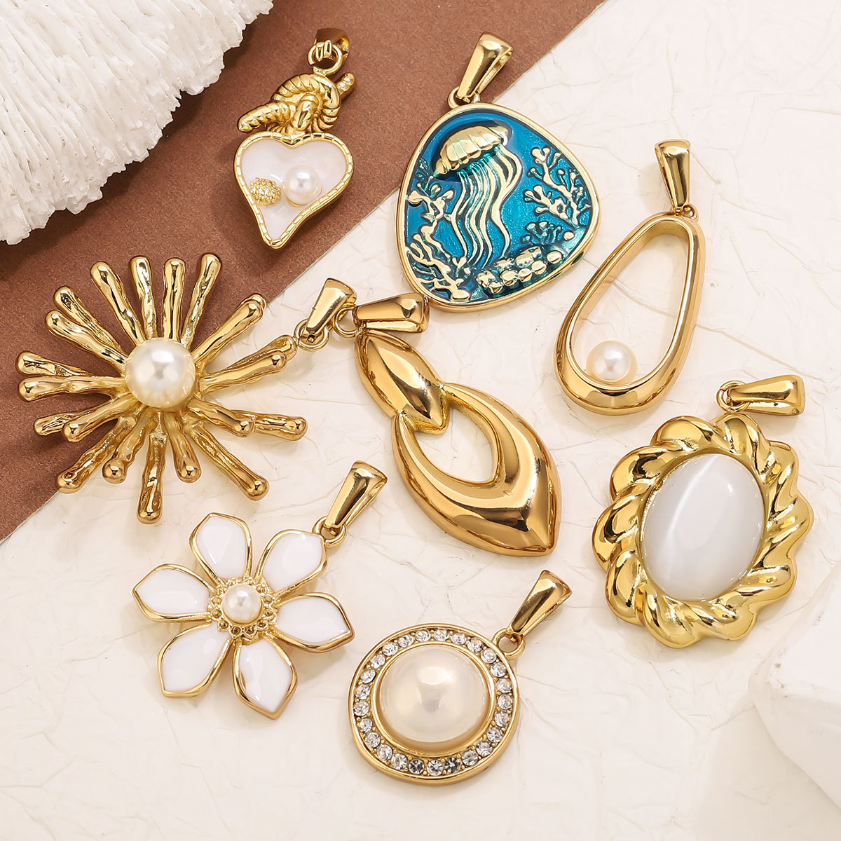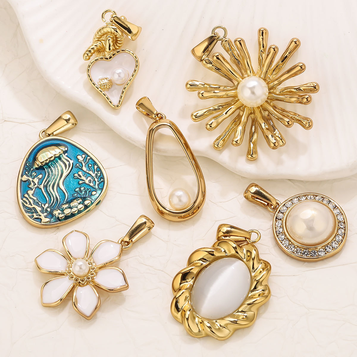 Pendentifs en acier inoxydable, Acier inoxydable 304, avec perle de plastique, Placage, DIY & styles différents pour le choix & avec strass, doré, 2PC/sac, Vendu par sac