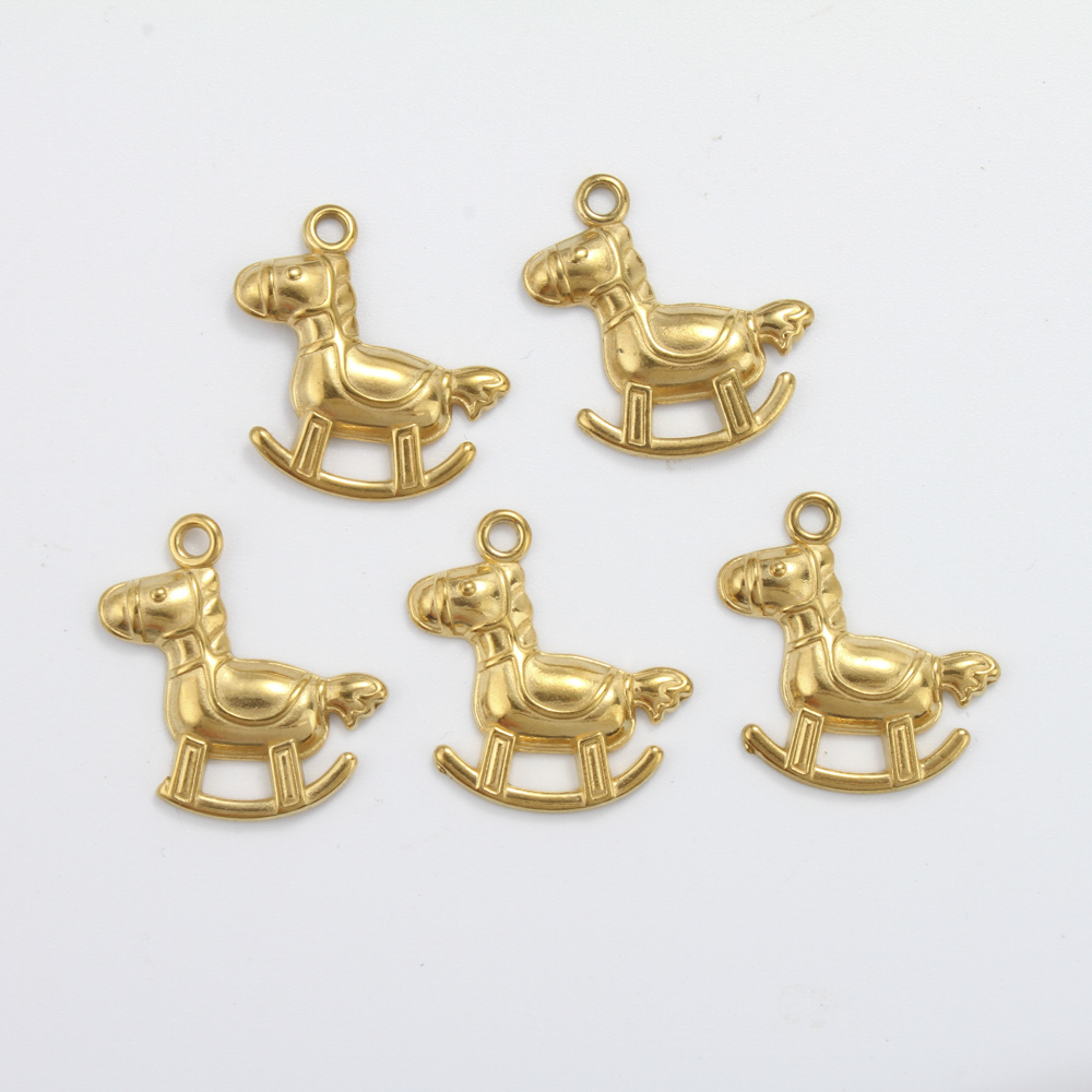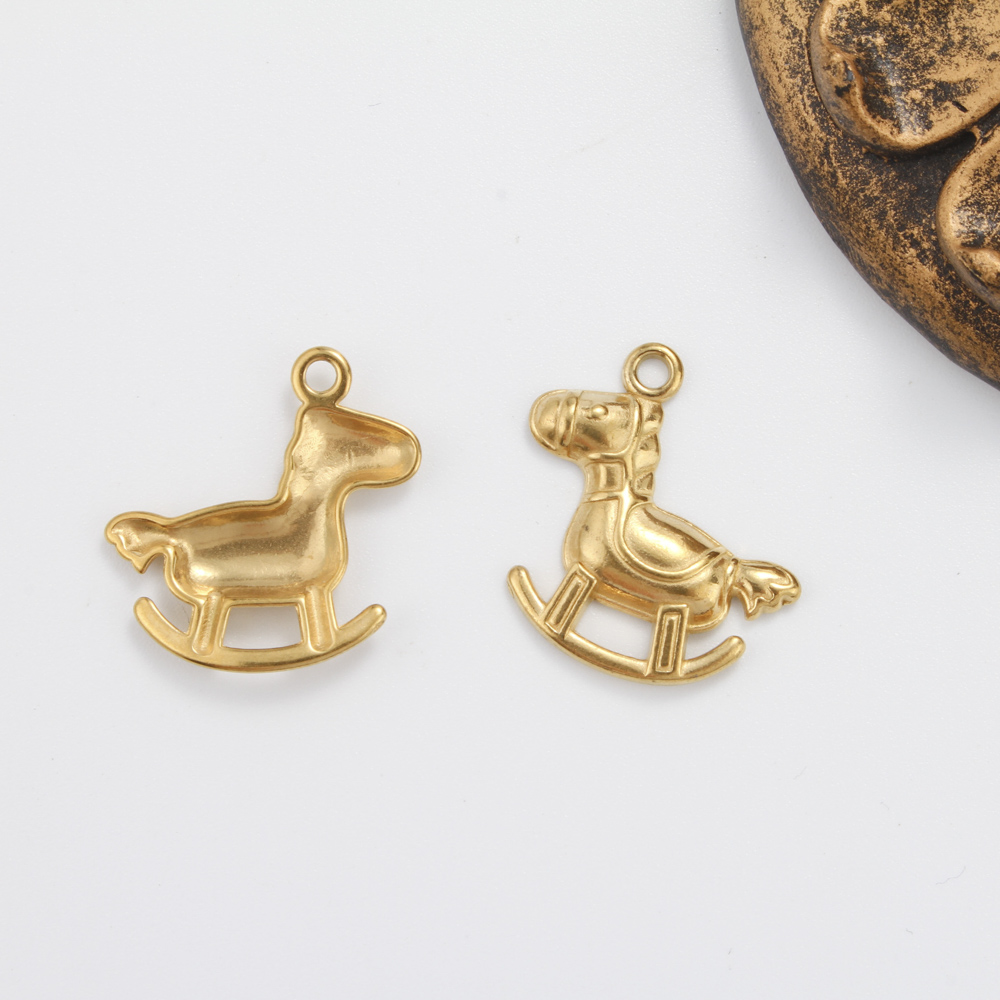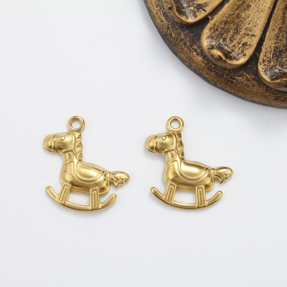 Pendentifs en acier inoxydable, Acier inoxydable 304, cheval à bascule, Placage de couleur d'or, DIY, doré, 23x20.6x2.8mm, Vendu par PC