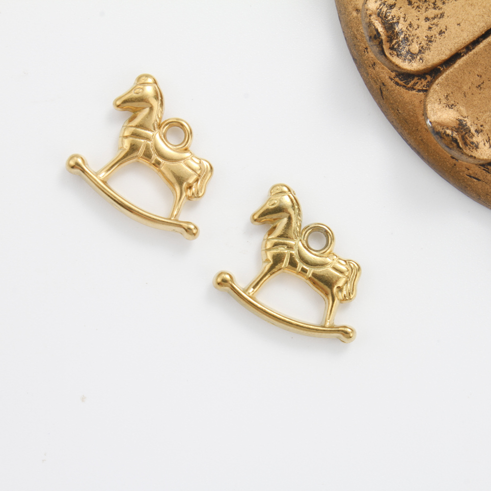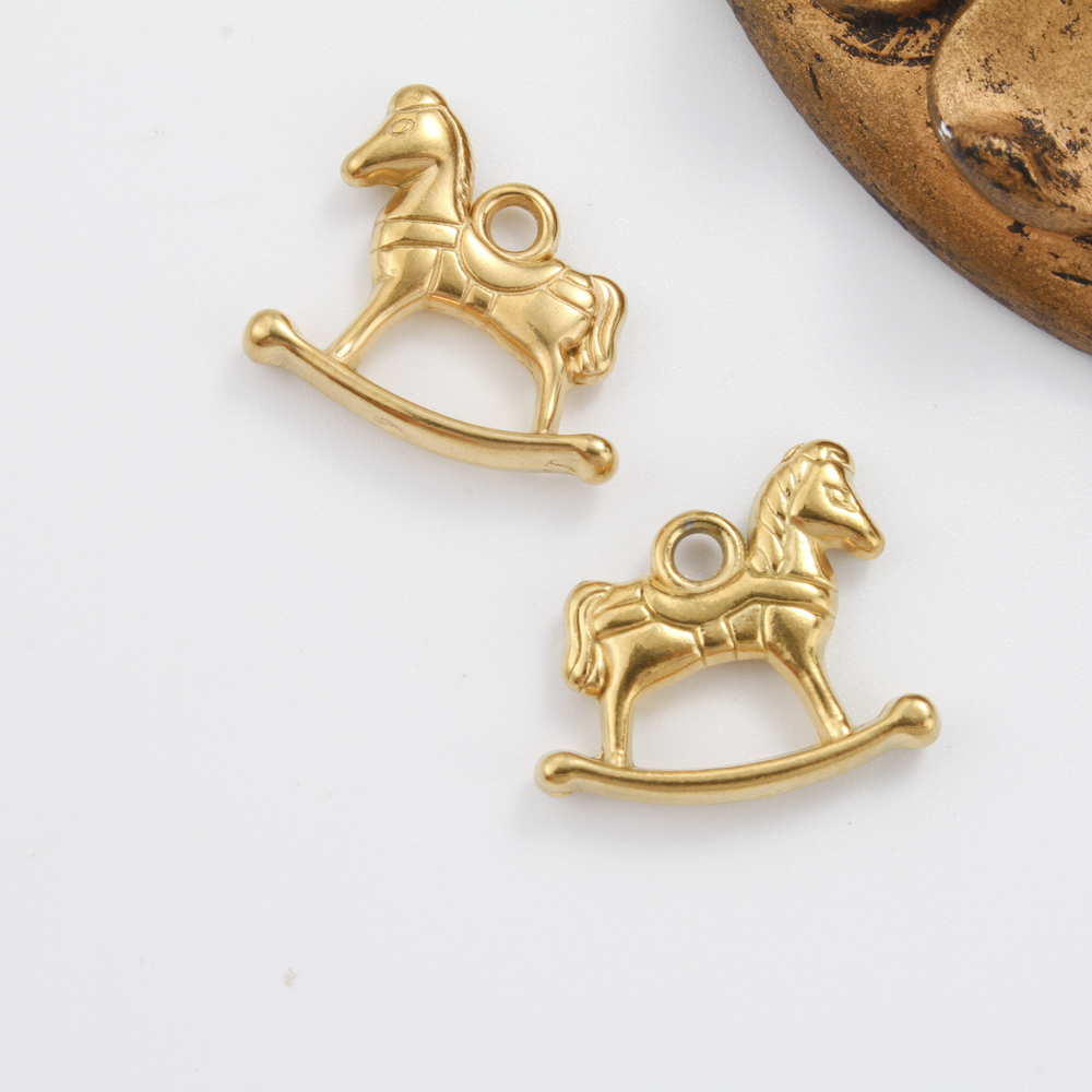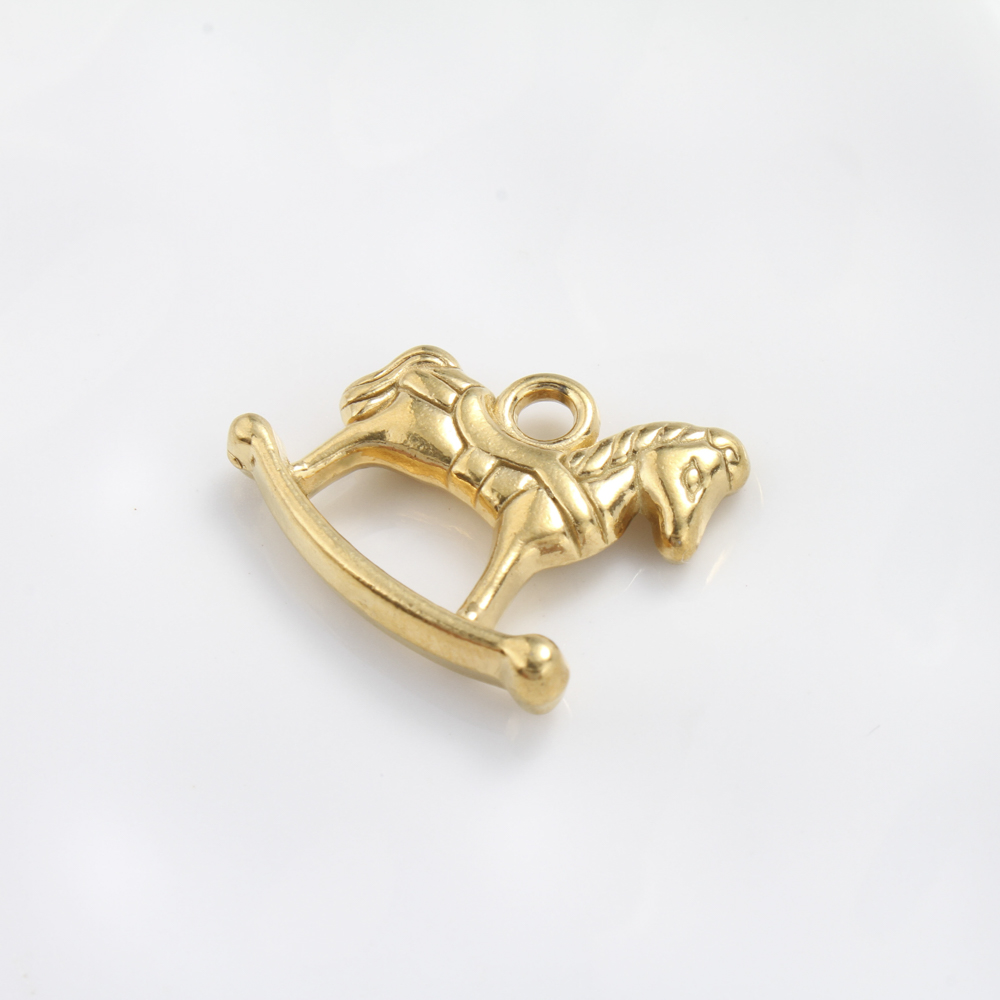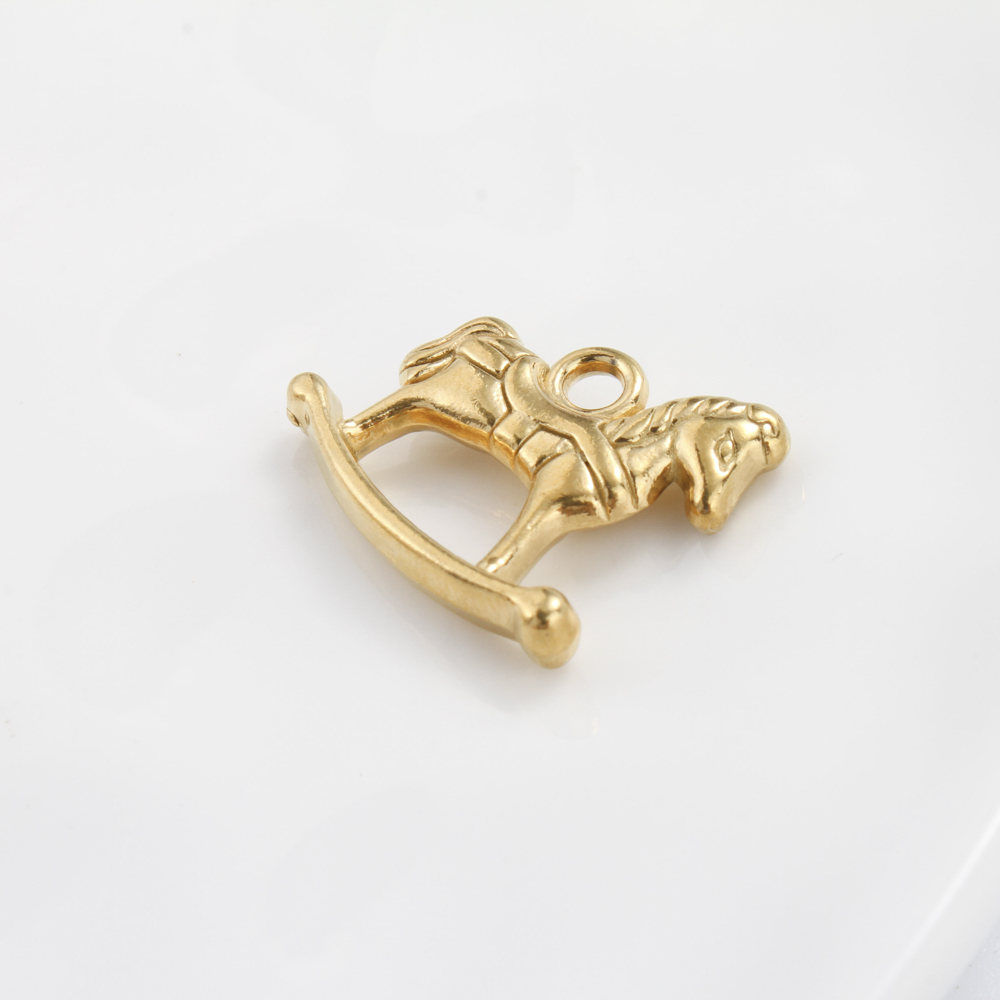 Pendentifs en acier inoxydable, Acier inoxydable 304, cheval à bascule, Placage de couleur d'or, DIY, doré, 18x20x3.5mm, Vendu par PC