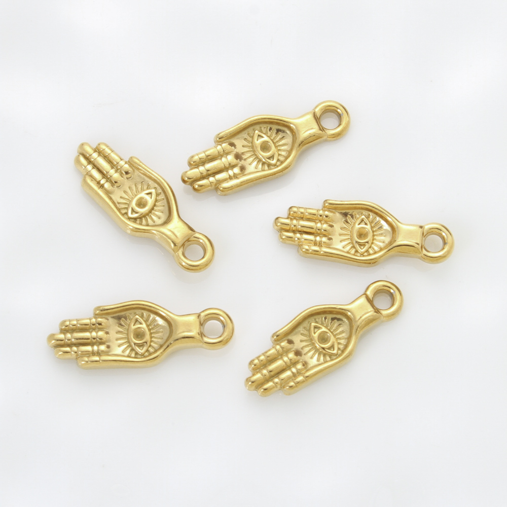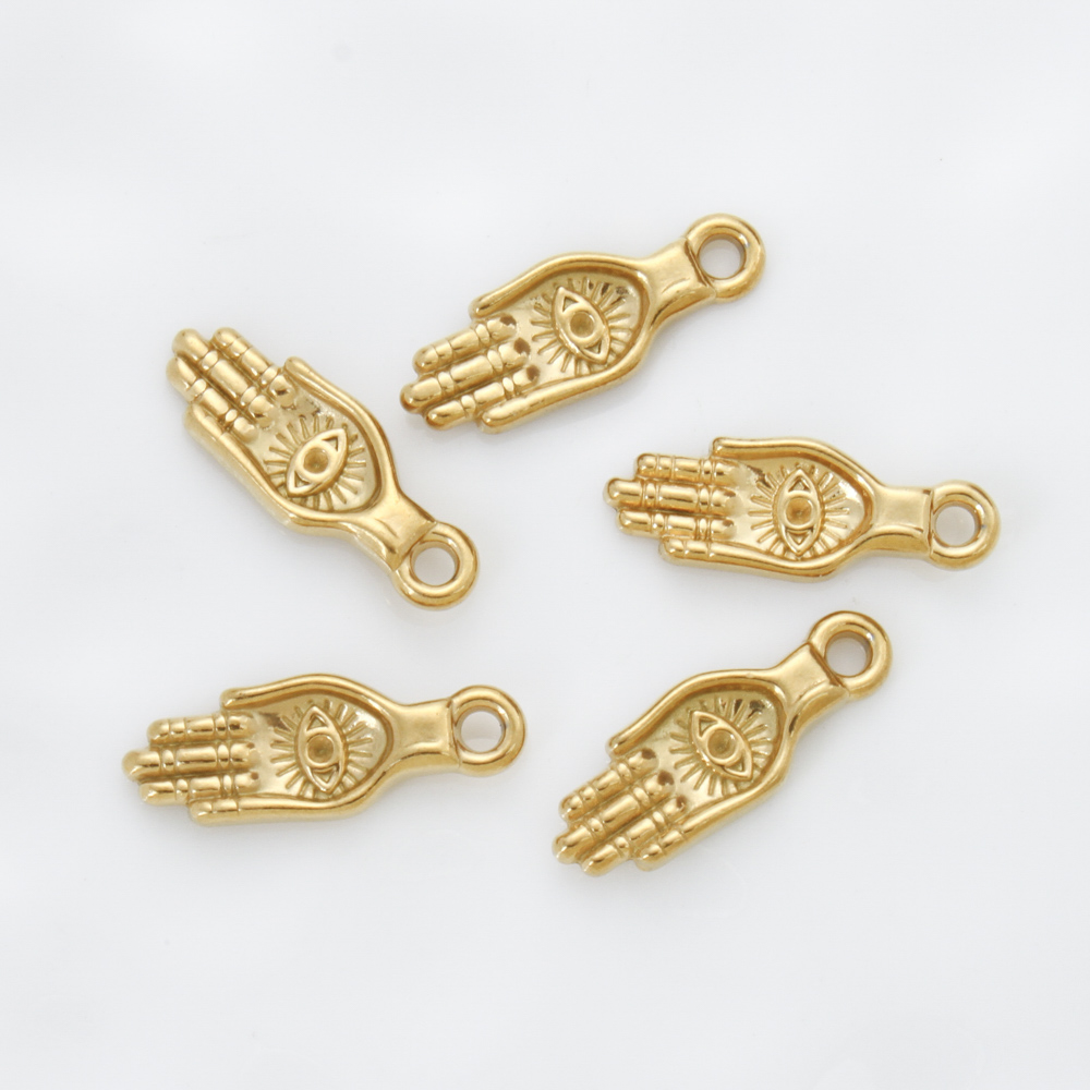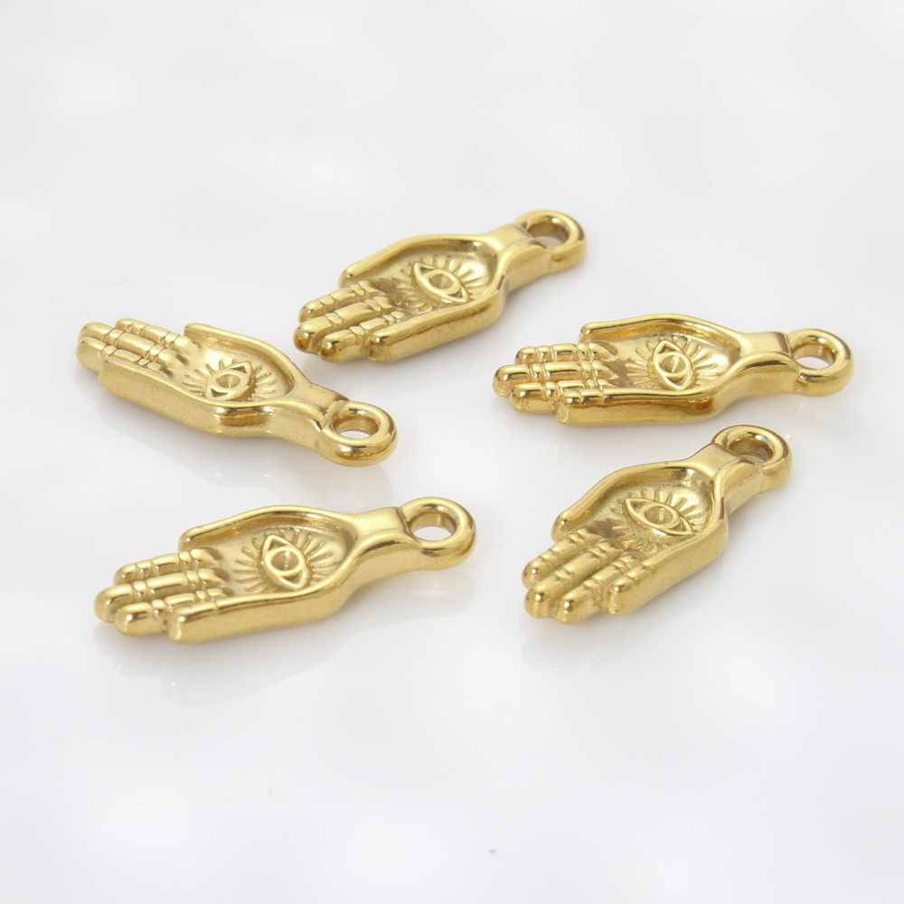 Pendentifs en acier inoxydable, Acier inoxydable 304, main, Placage de couleur d'or, DIY, doré, 24.6x9x3.6mm, Vendu par PC