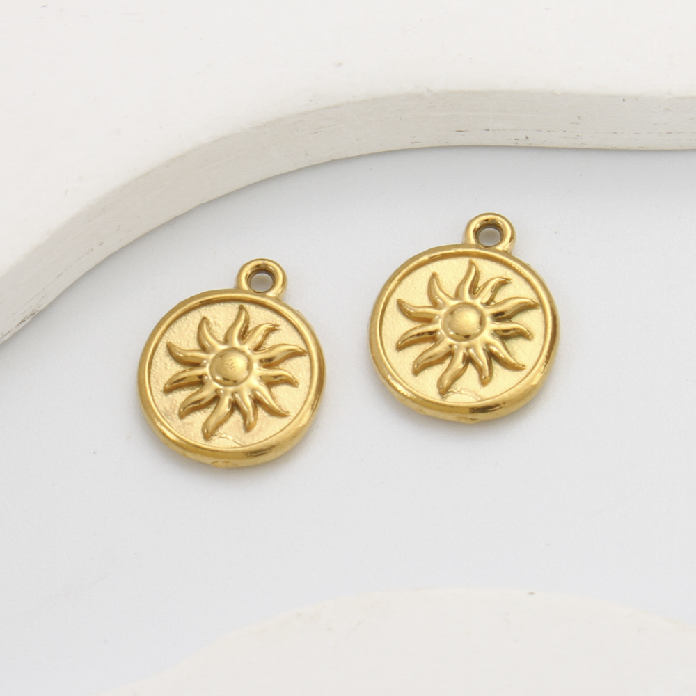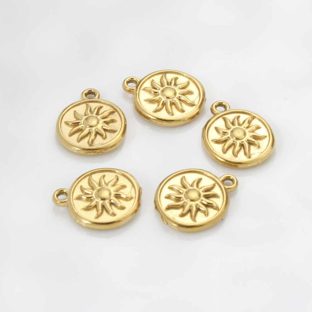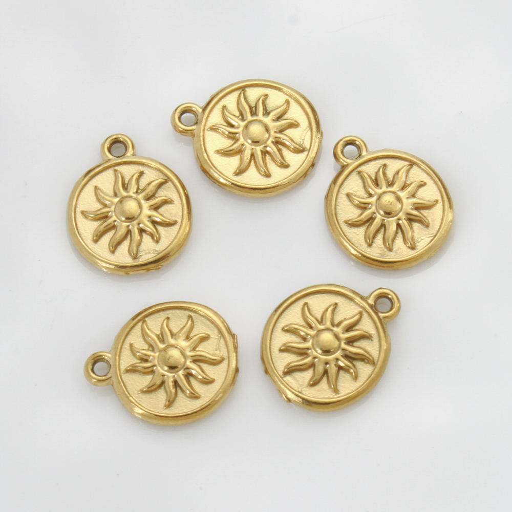 Pendentifs en acier inoxydable, Acier inoxydable 304, Rond, Placage de couleur d'or, DIY, doré, 16x13x2.7mm, Vendu par PC