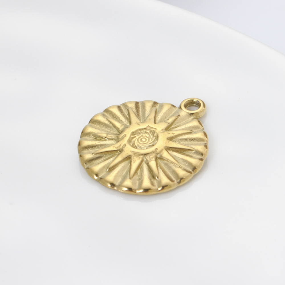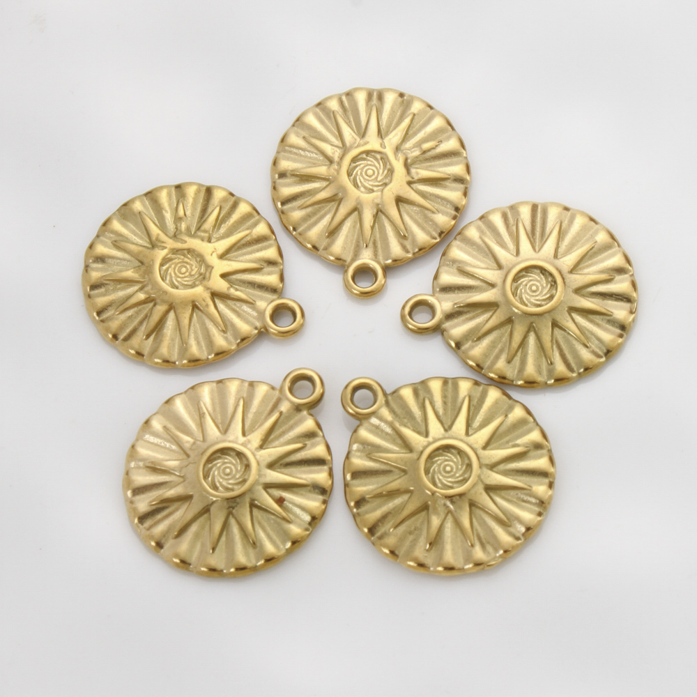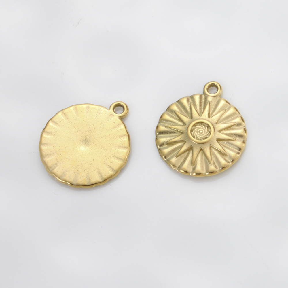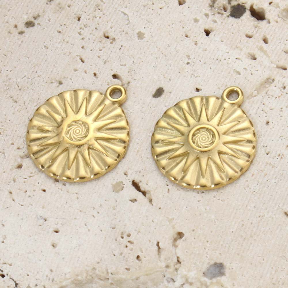 Pendentifs en acier inoxydable, Acier inoxydable 304, Rond, Placage de couleur d'or, DIY, doré, 19.6x16.8x1.8mm, Vendu par PC
