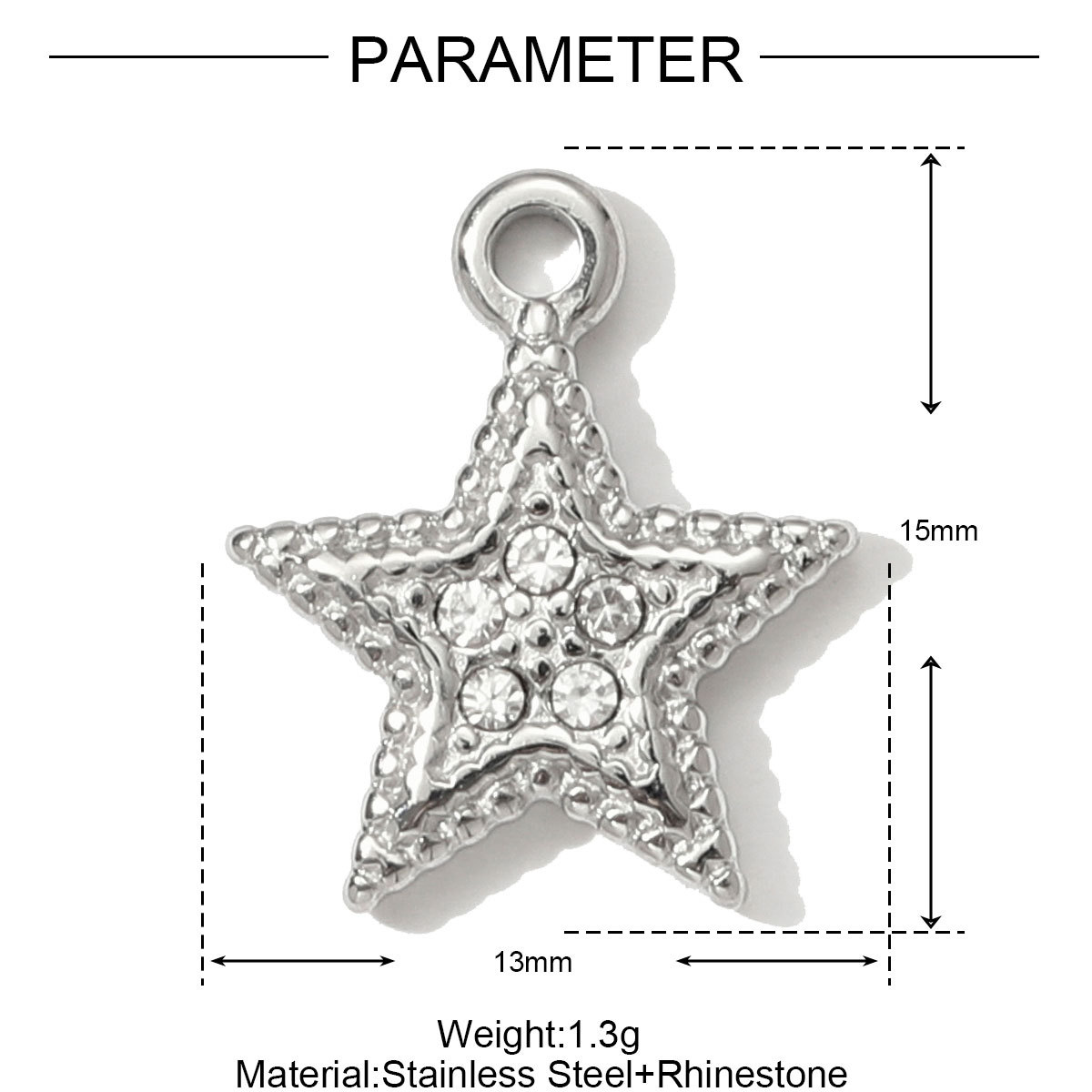 Pendentifs en acier inoxydable, Acier inoxydable 304, Placage, DIY & avec strass, argent, 3PC/sac, Vendu par sac
