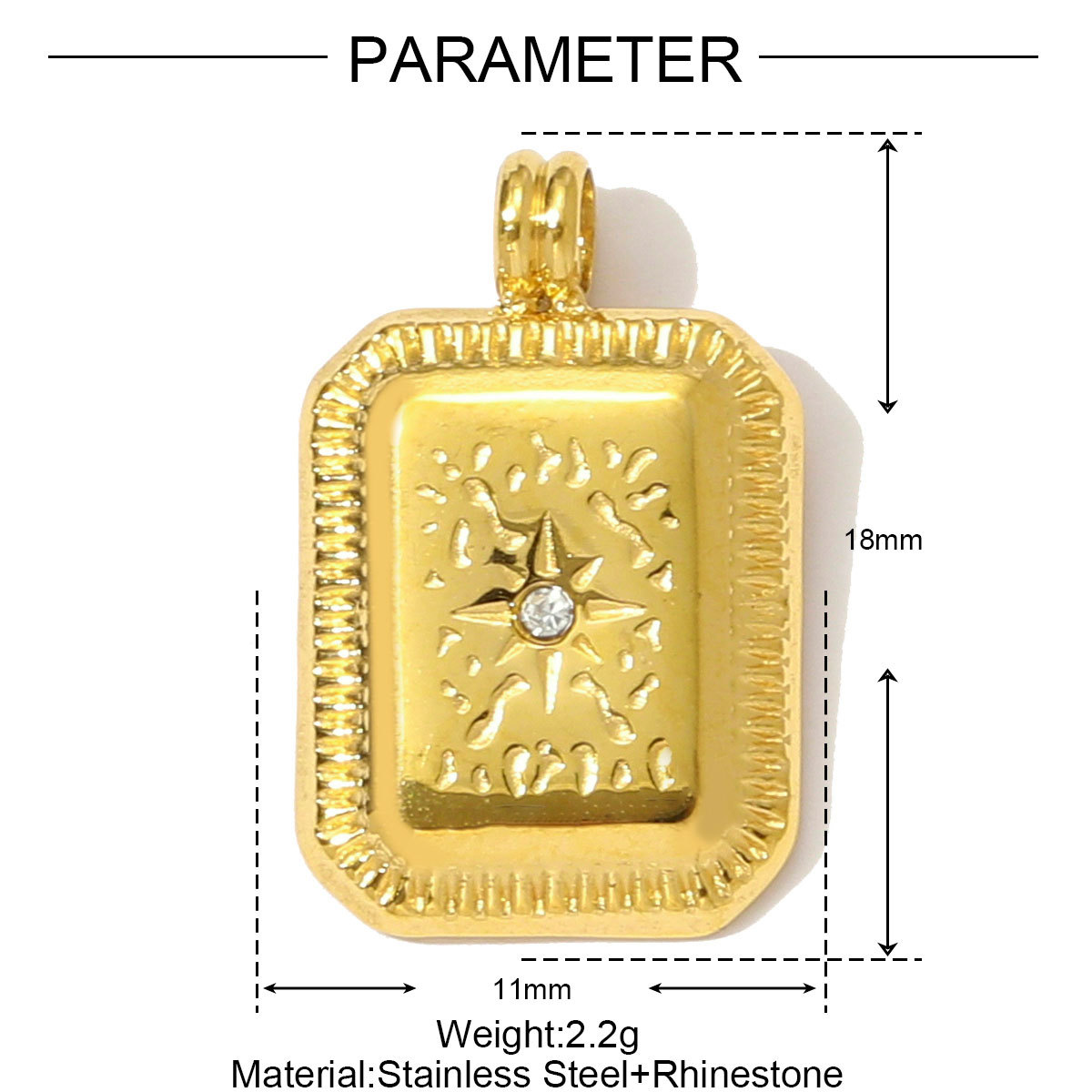 Pendentifs en acier inoxydable, Acier inoxydable 304, rectangle, unisexe, couleur originale Vendu par PC