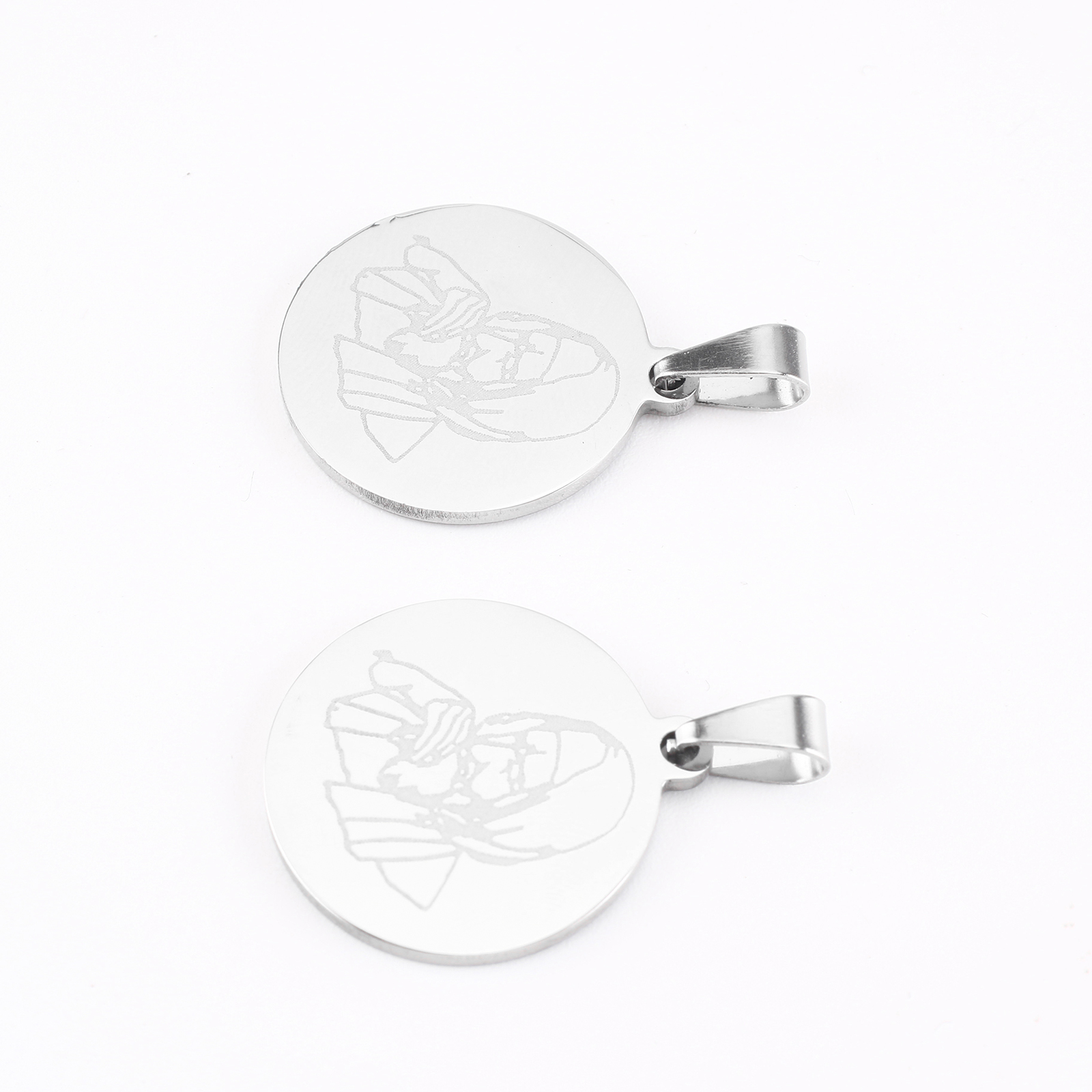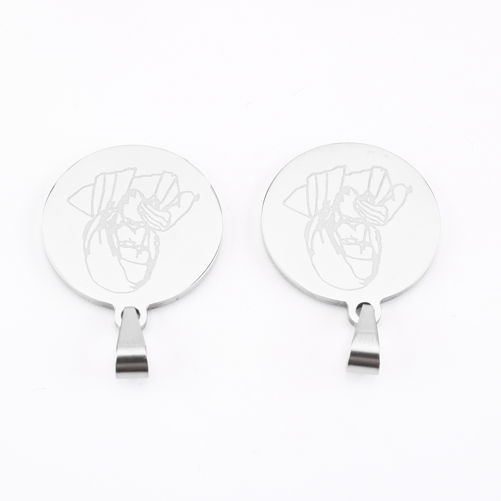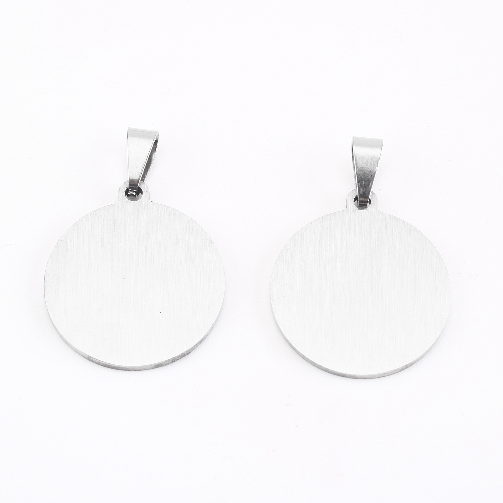 Pendentifs en acier inoxydable, Acier inoxydable 304, Plat rond, DIY, couleur originale, 26x20x1mm, Vendu par PC
