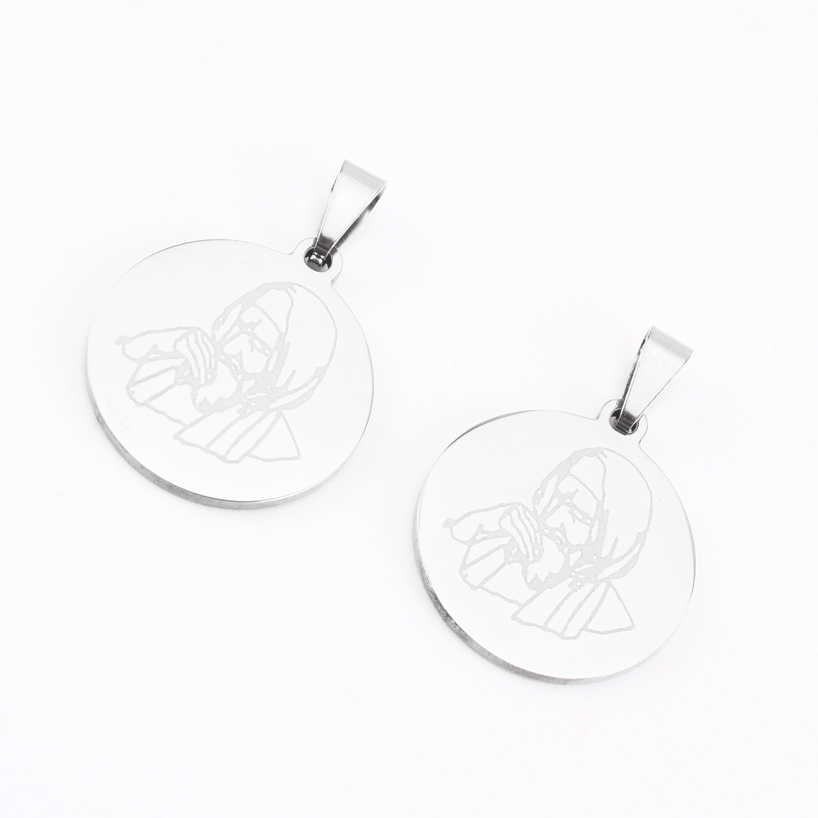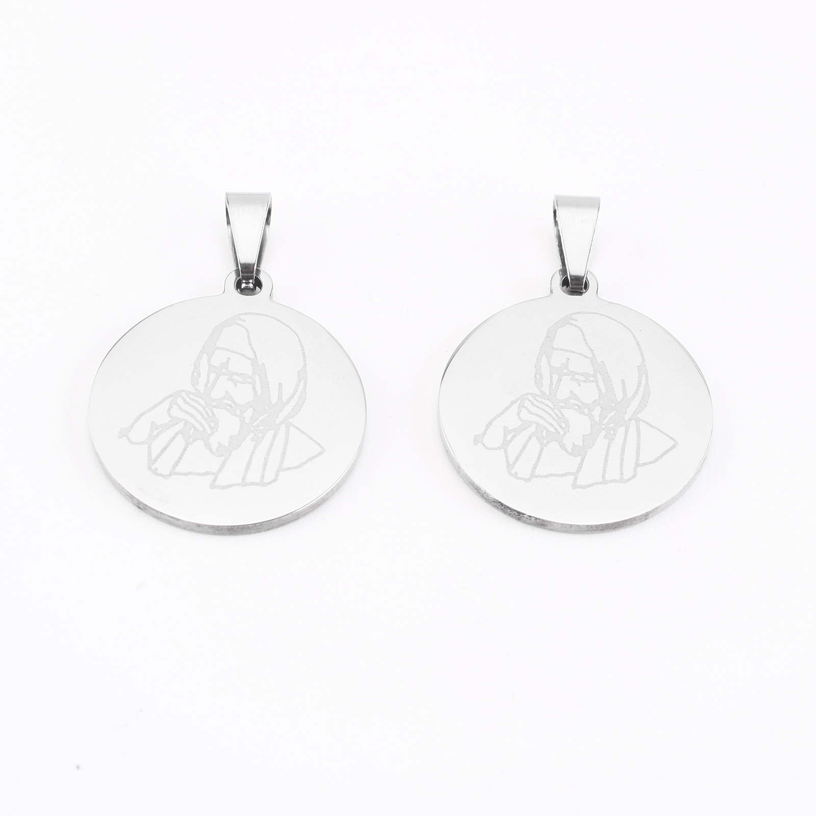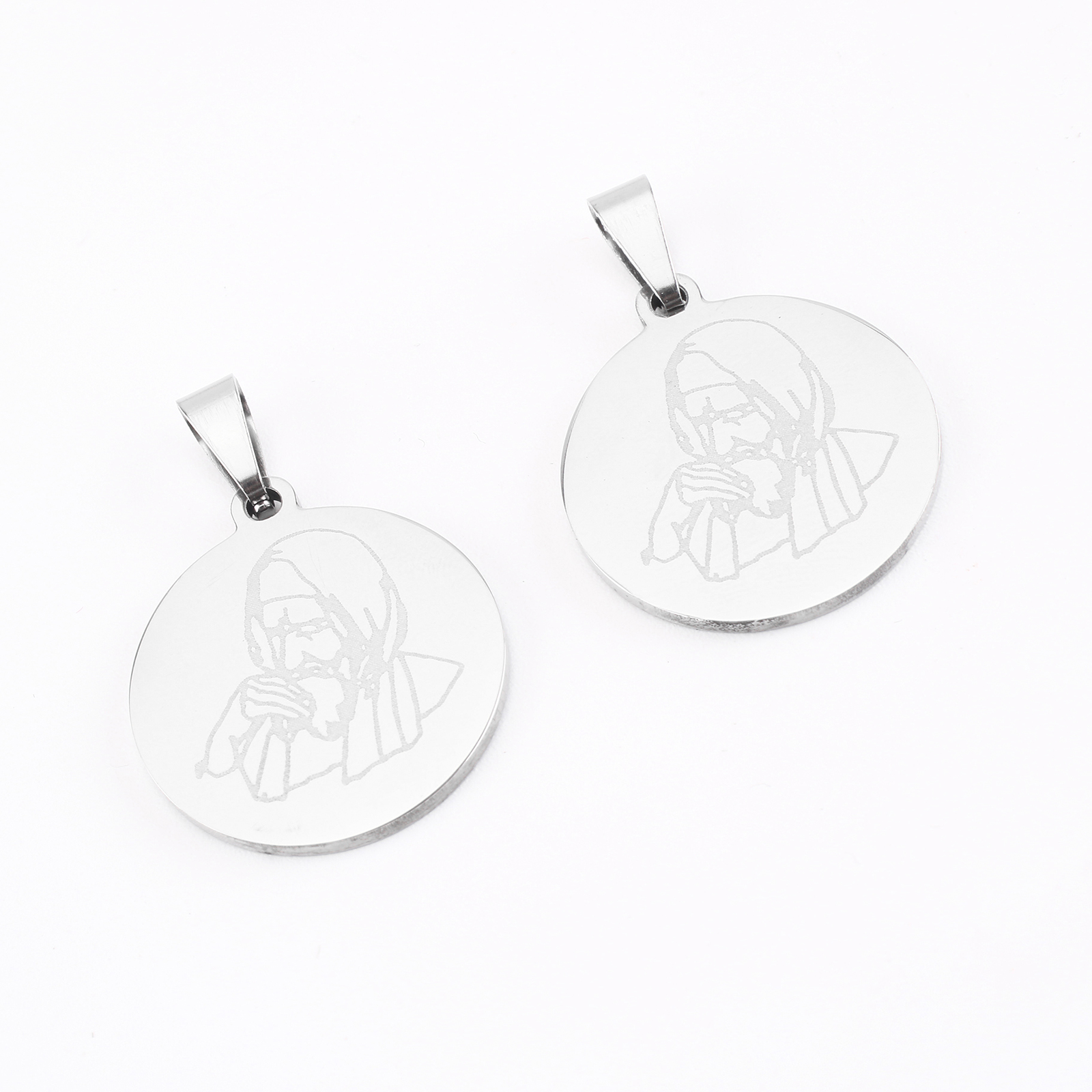 Pendentifs en acier inoxydable, Acier inoxydable 304, Plat rond, DIY, couleur originale, 26x20x1mm, Vendu par PC