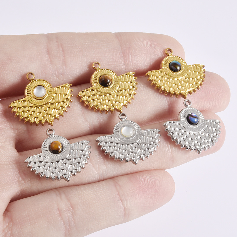 Pendentifs en acier inoxydable, Acier inoxydable 304, avec coquille, éventail, Placage, DIY, plus de couleurs à choisir, 10PC/sac, Vendu par sac