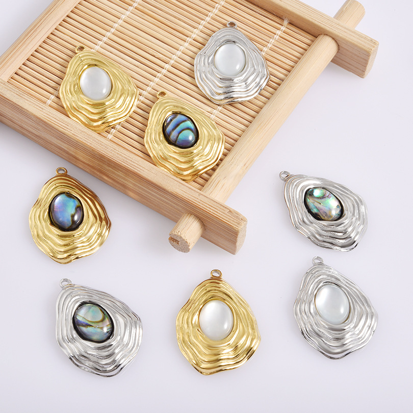 Pendentifs en acier inoxydable, Acier inoxydable 304, avec coquille, Placage, DIY, plus de couleurs à choisir, 10PC/sac, Vendu par sac
