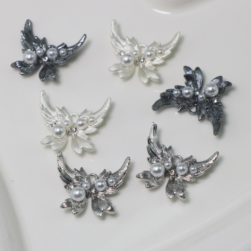 Pendentifs en alliage de Zinc en plastique, avec perle de plastique, papillon, Placage, DIY & avec strass, plus de couleurs à choisir, Vendu par PC