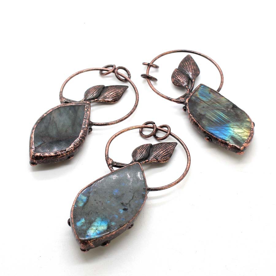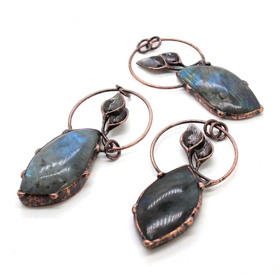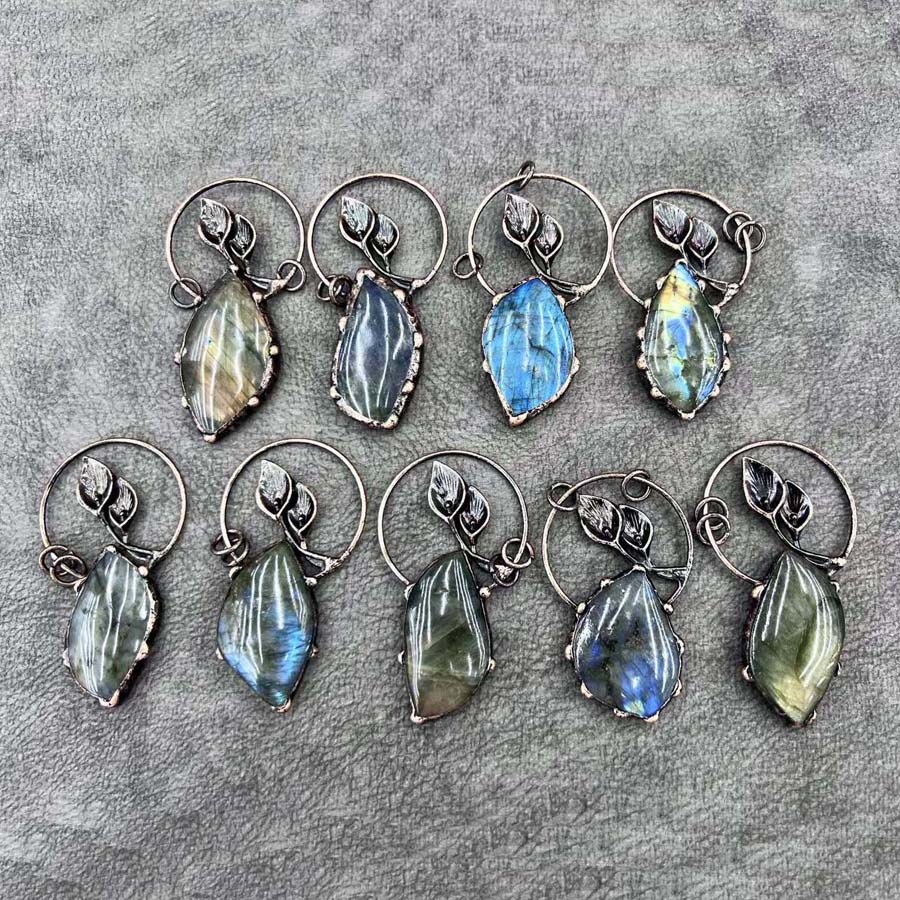 Pendentifs en labradorite, avec alliage de zinc, poli, envoyé au hasard & DIY & creux, 64x40mm, Vendu par PC