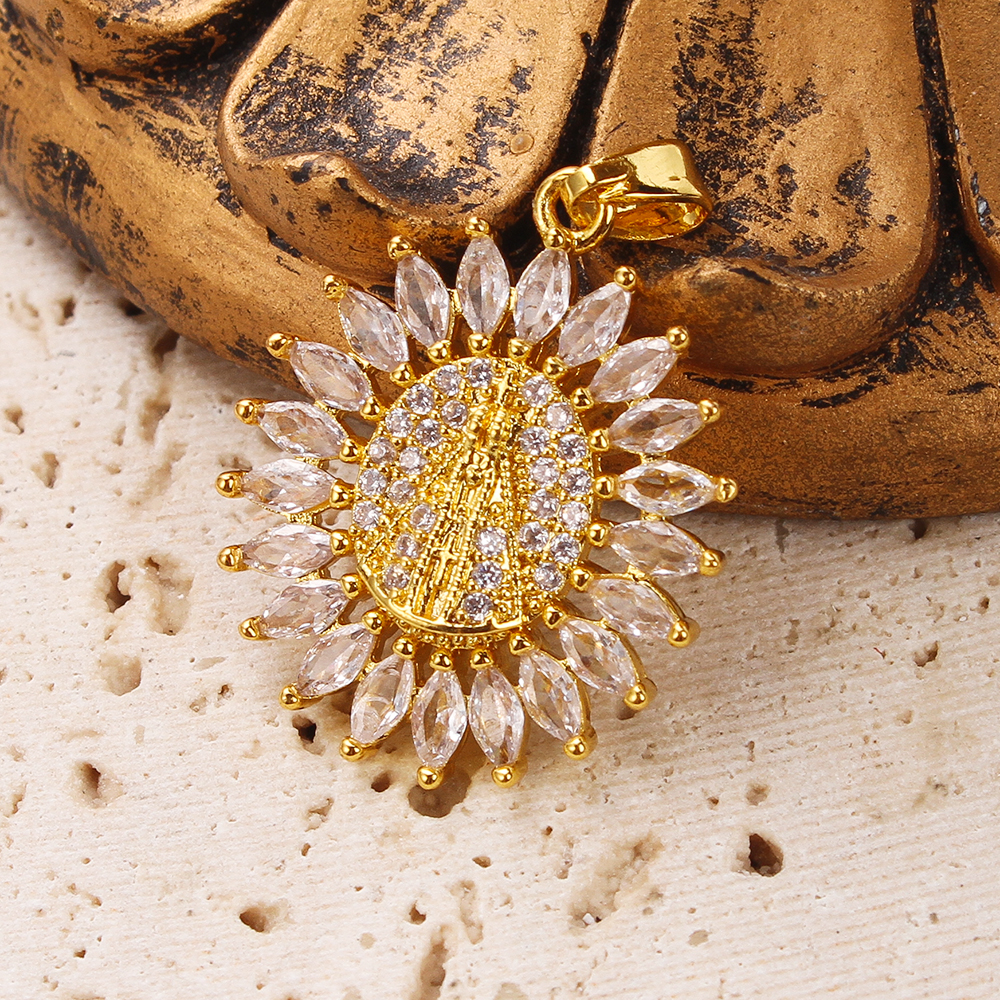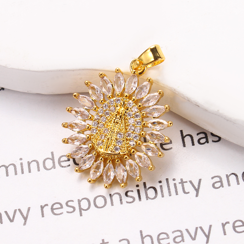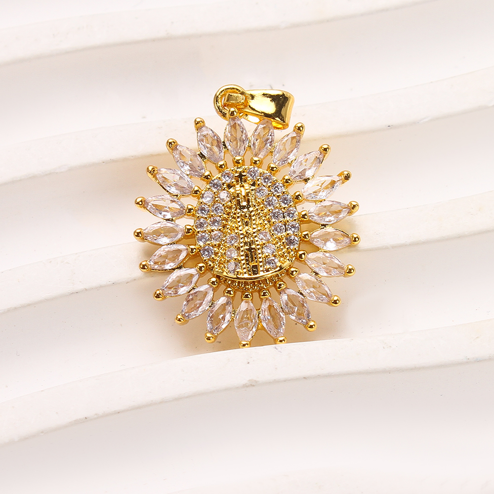 Pendentifs en laiton cristal, avec cristal, fleur, Placage, DIY & pavé de micro zircon, doré, 19.32x3.15x27.5mm, 20PC/sac, Vendu par sac