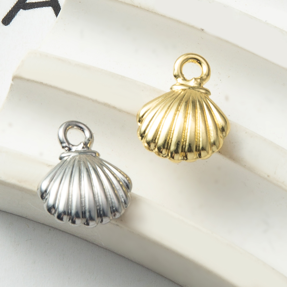 Pendentifs en laiton de fleur, coquille, Placage, bijoux de mode, plus de couleurs à choisir, protéger l'environnement, sans nickel, plomb et cadmium, 10.2x4.3x13.8mm, Vendu par PC