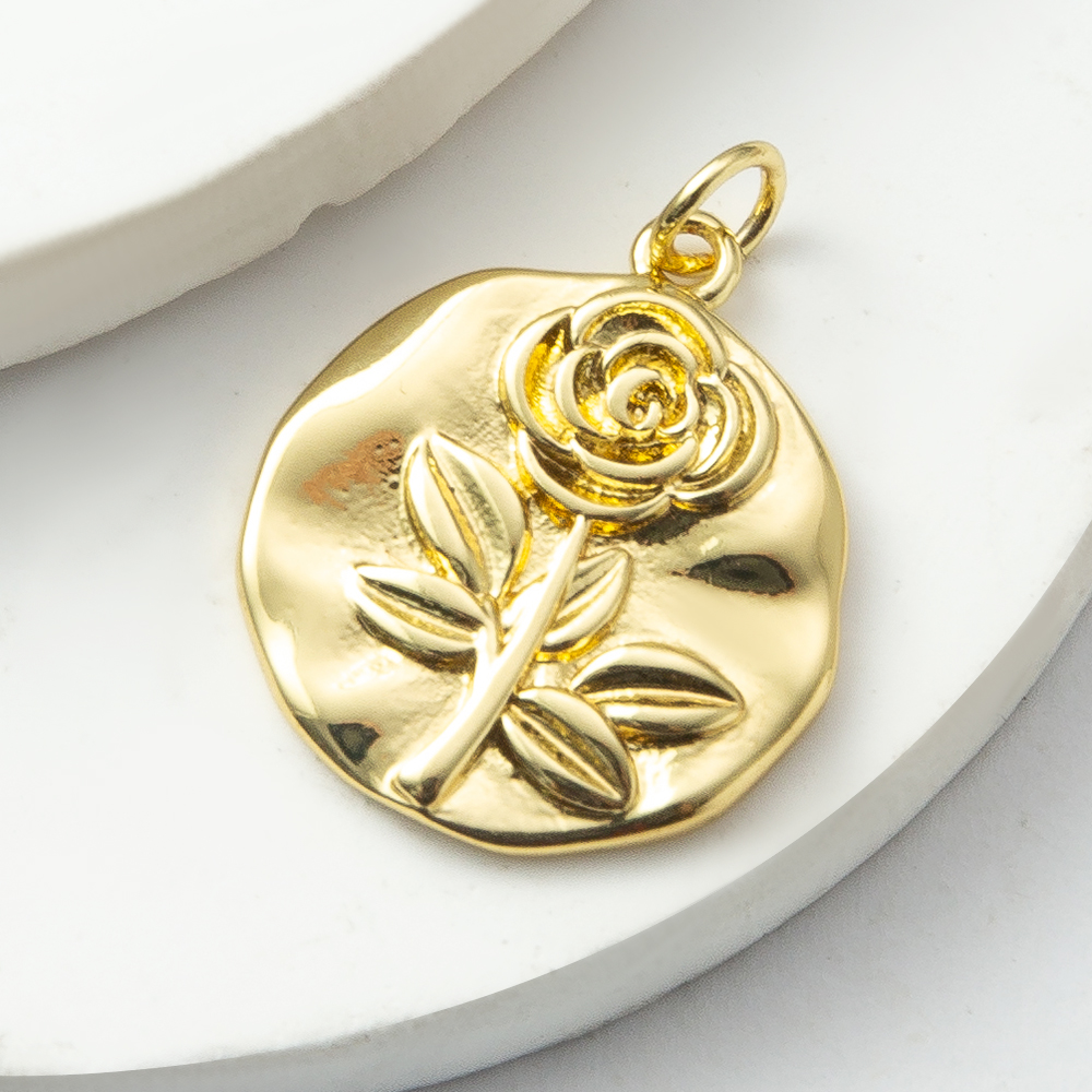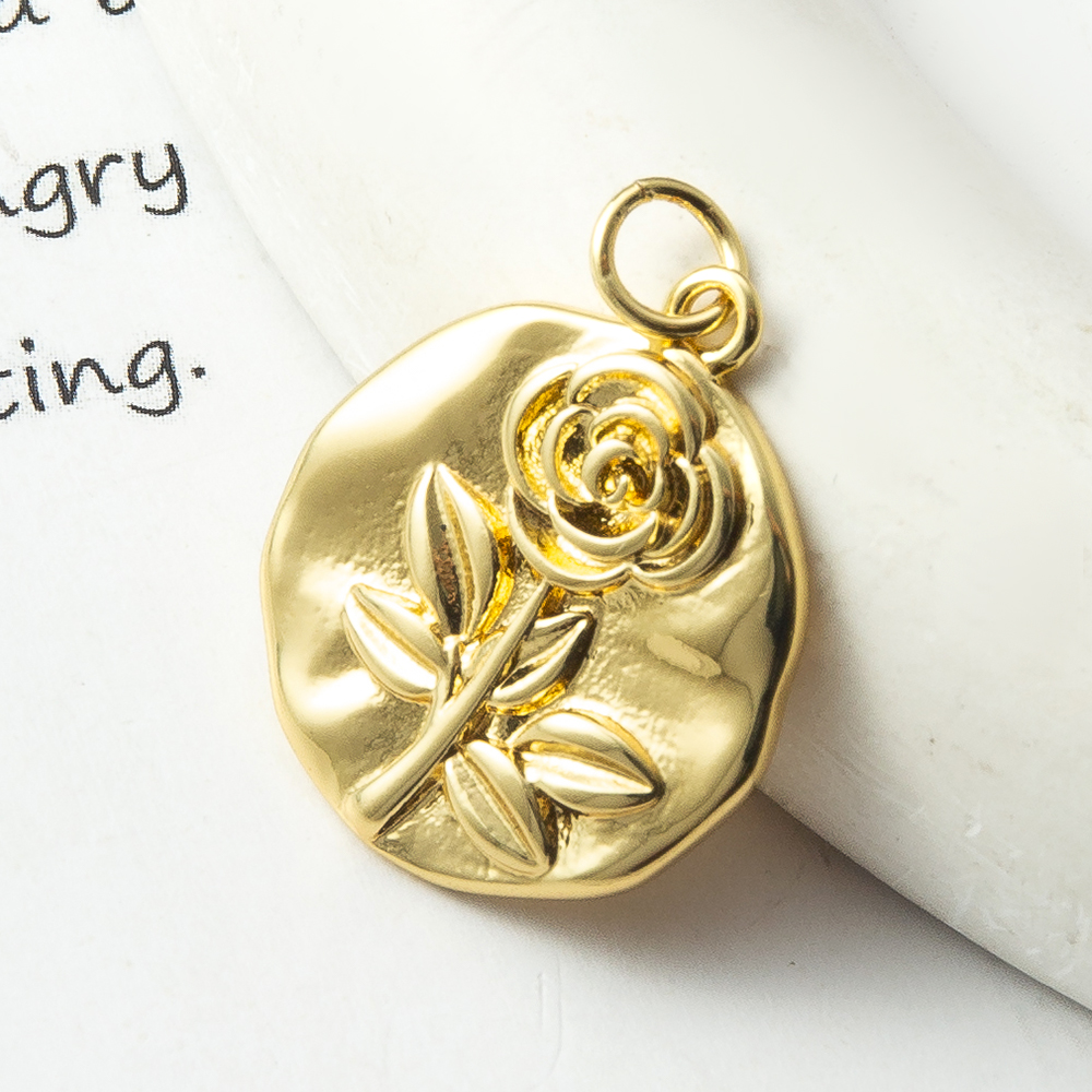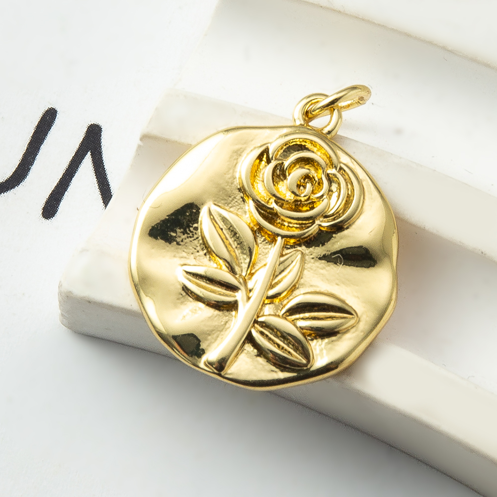 Pendentifs en laiton de fleur, Rose, Placage, bijoux de mode, doré, protéger l'environnement, sans nickel, plomb et cadmium, 18.16x2.6x24.5mm, Vendu par PC