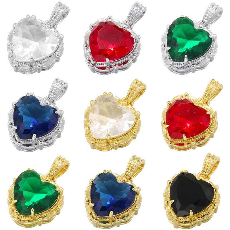 Pendentifs en laiton zircon cubique (CZ), coeur, Placage, DIY & pavé de micro zircon, plus de couleurs à choisir, Vendu par PC
