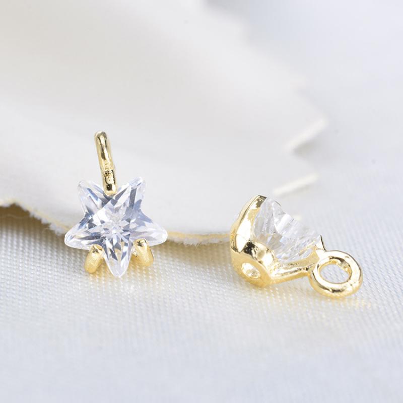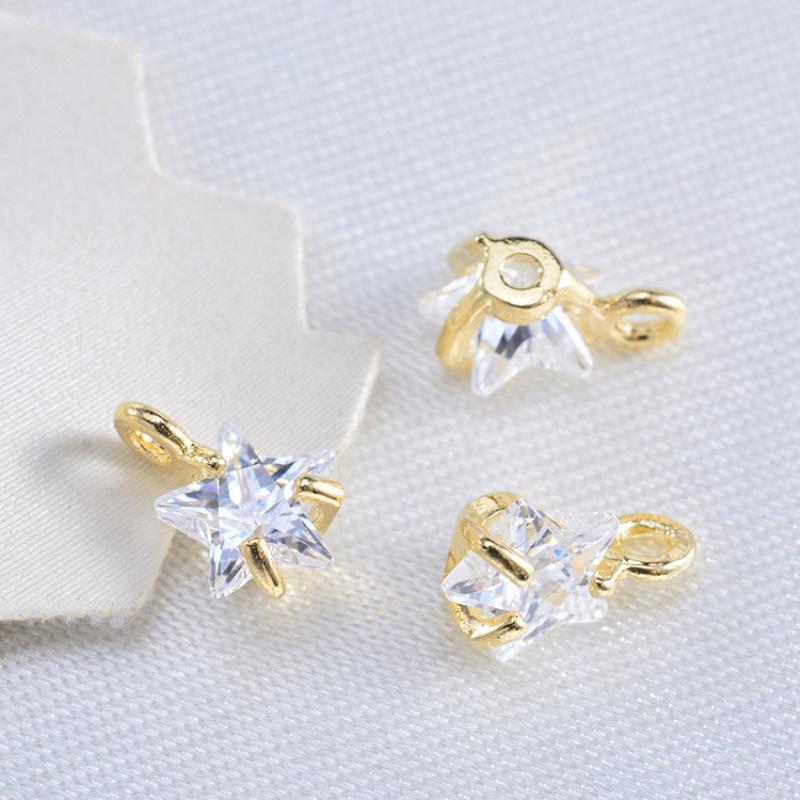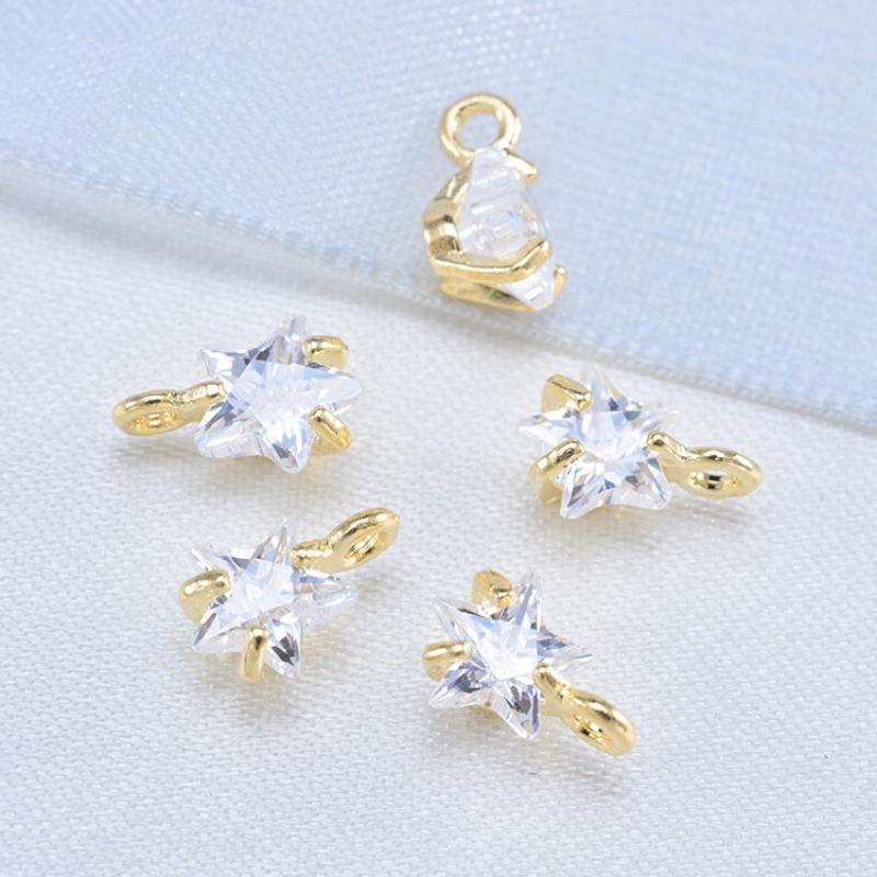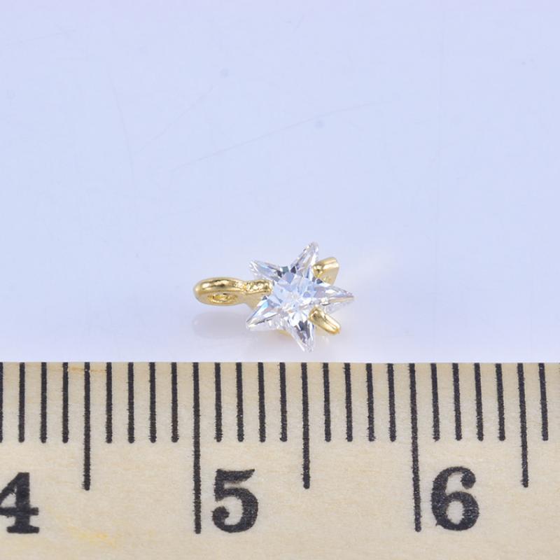 Pendentifs en laiton zircon cubique (CZ), avec zircon cubique, étoile, Placage de couleur d'or, DIY, 7x5mm, Vendu par PC