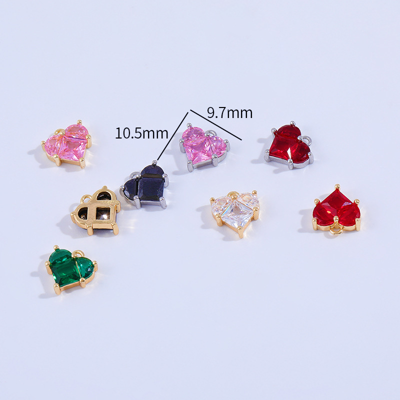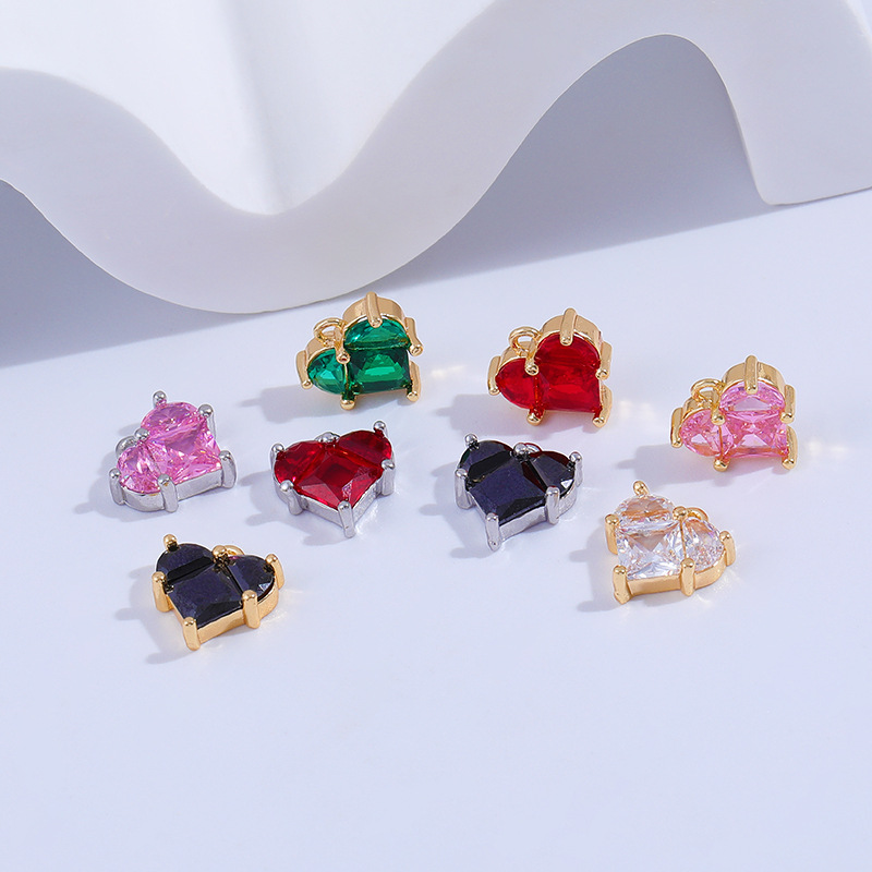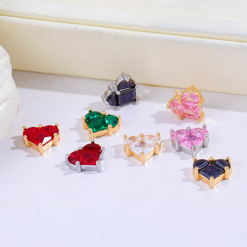 Pendentifs en laiton zircon cubique (CZ), avec zircon cubique, coeur, Placage, DIY, plus de couleurs à choisir, Vendu par PC