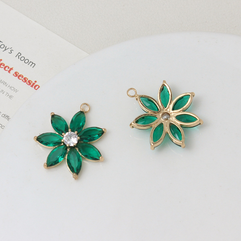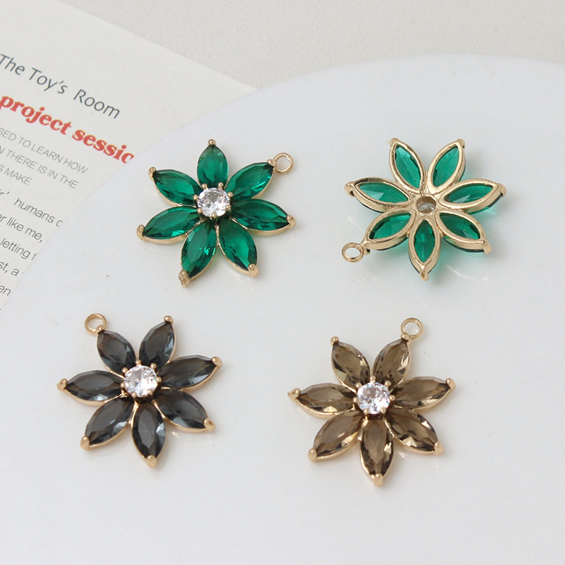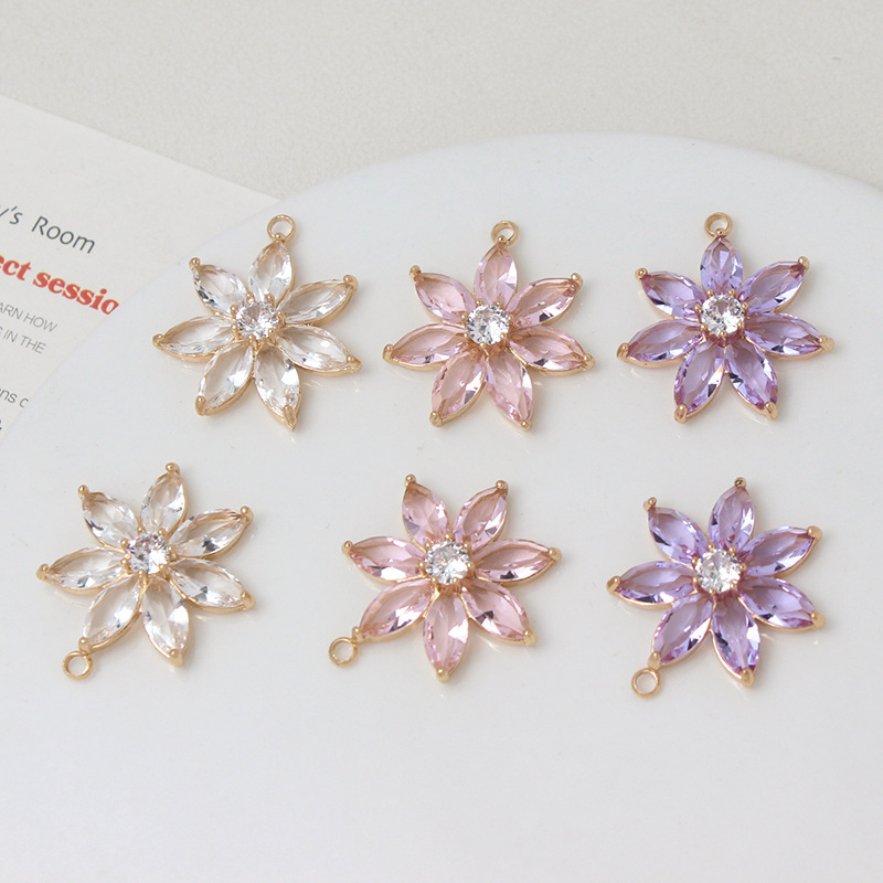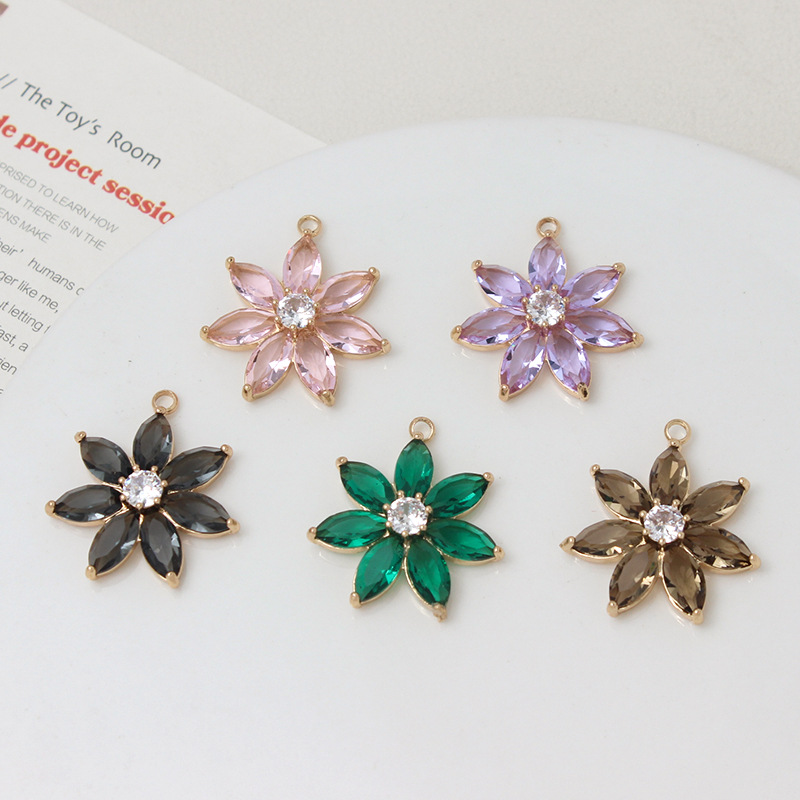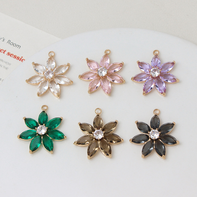 Pendentifs en laiton zircon cubique (CZ), avec zircon cubique, fleur, Placage de couleur d'or, DIY, plus de couleurs à choisir, 25x28mm, 10PC/sac, Vendu par sac