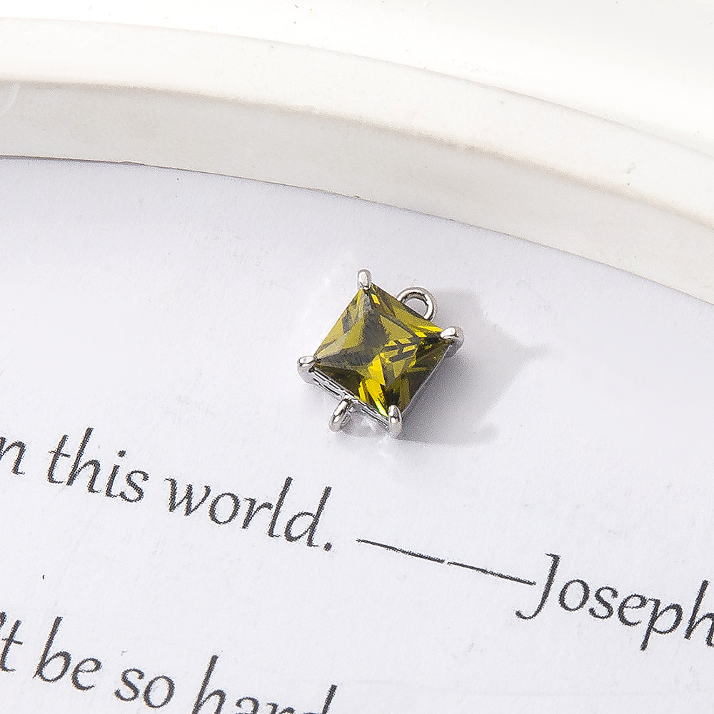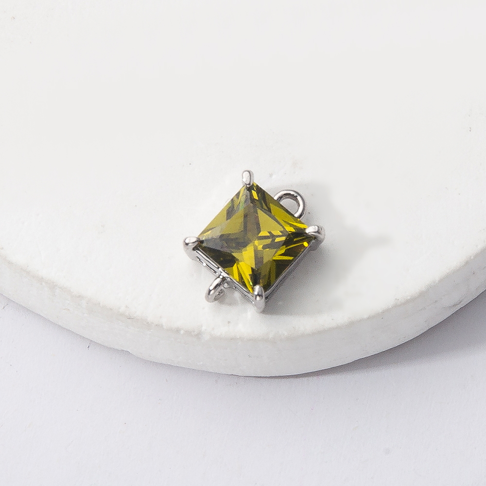 Pendentifs en laiton zircon cubique (CZ), cadre, Placage de couleur argentée, DIY & pavé de micro zircon, vert, 7x3x10mm, Vendu par PC