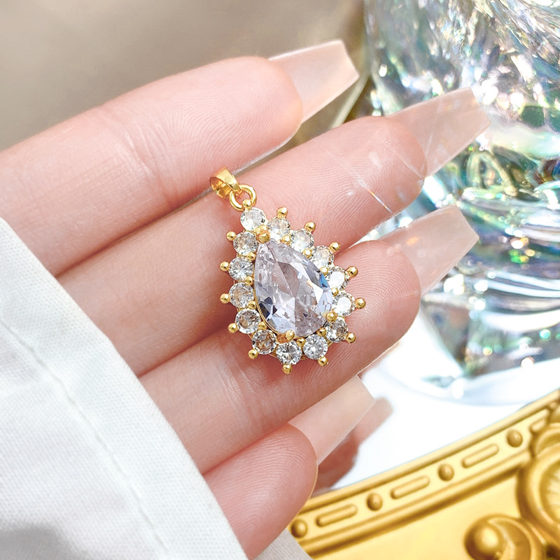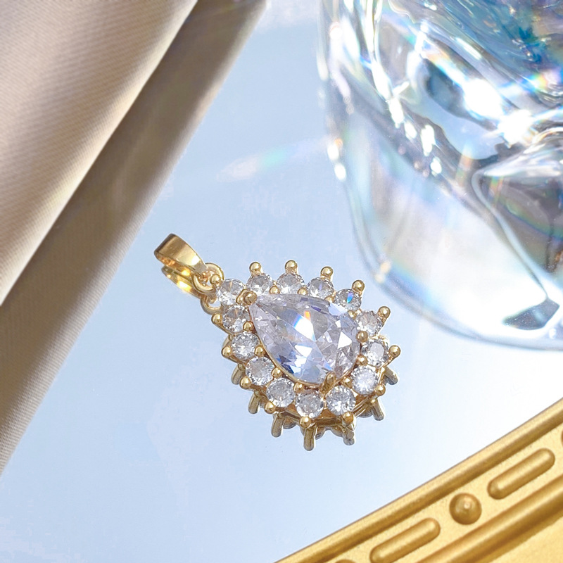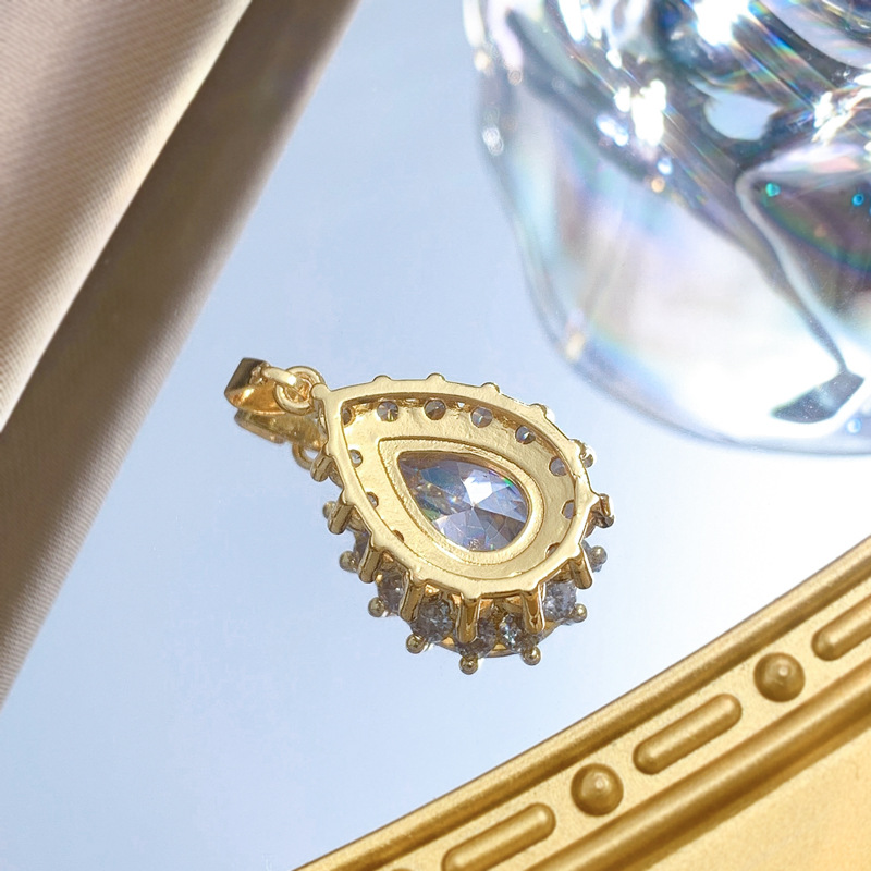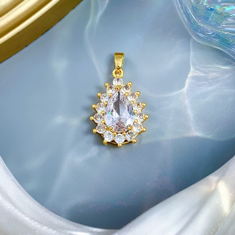 Pendentifs en laiton zircon cubique (CZ), larme, Plaqué d'or, DIY & pavé de micro zircon, Vendu par PC