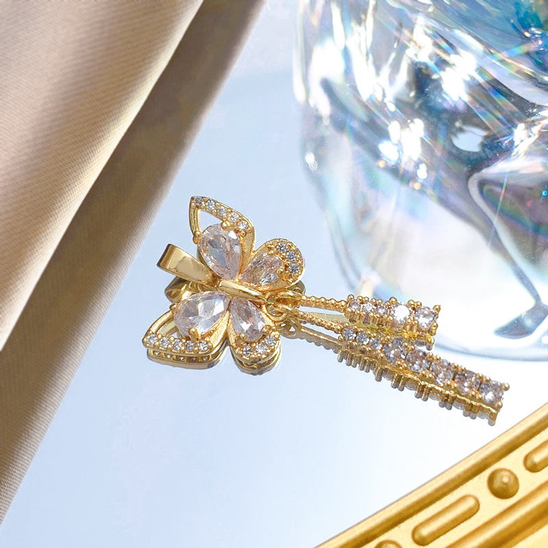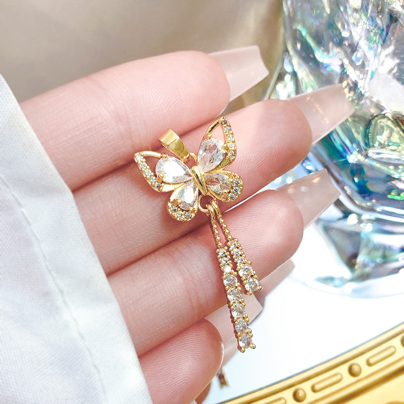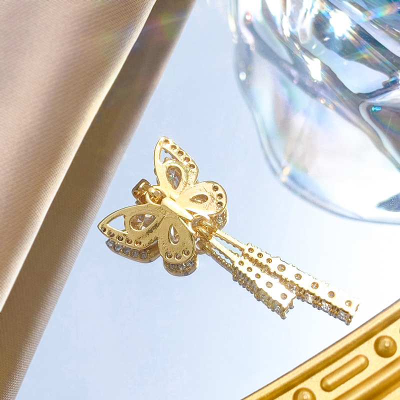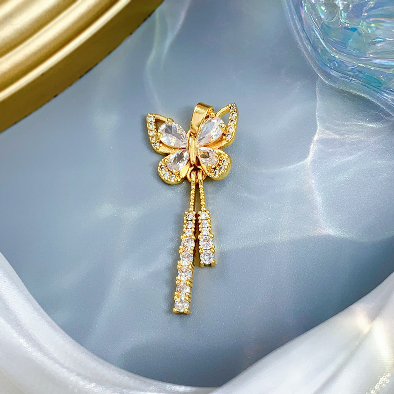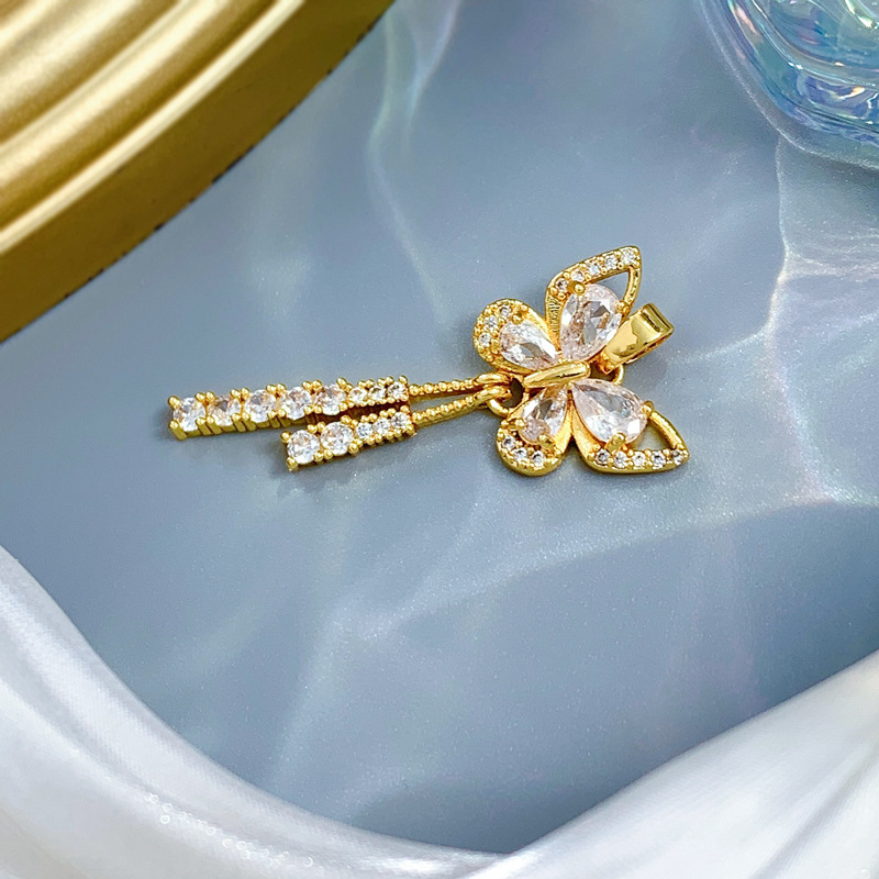 Pendentifs en laiton zircon cubique (CZ), papillon, Plaqué d'or, DIY & pavé de micro zircon & creux, Vendu par PC
