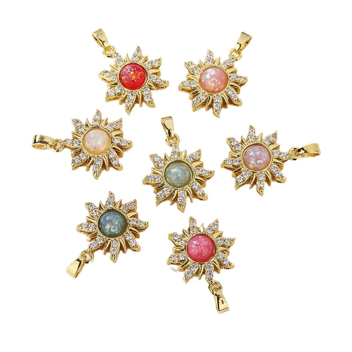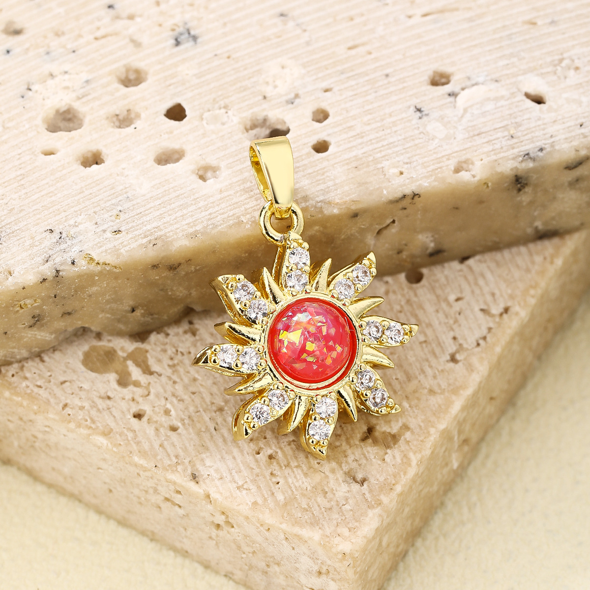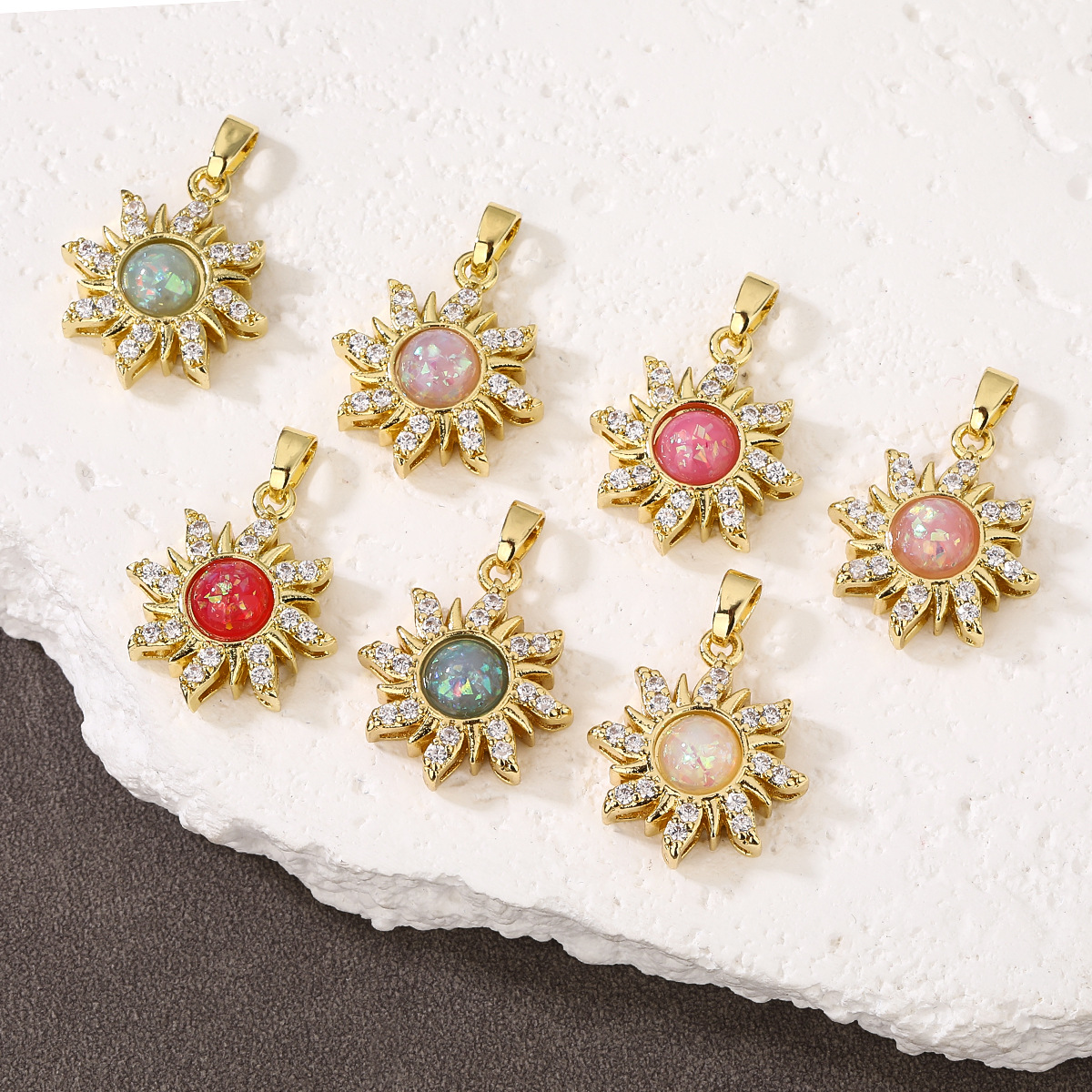 Pendentifs en laiton zircon cubique (CZ), avec zircon cubique, soleil, Placage de couleur d'or, DIY, plus de couleurs à choisir, 14x17mm, Vendu par PC