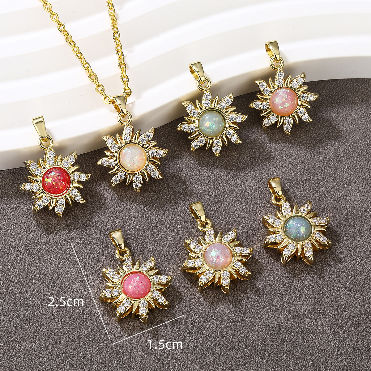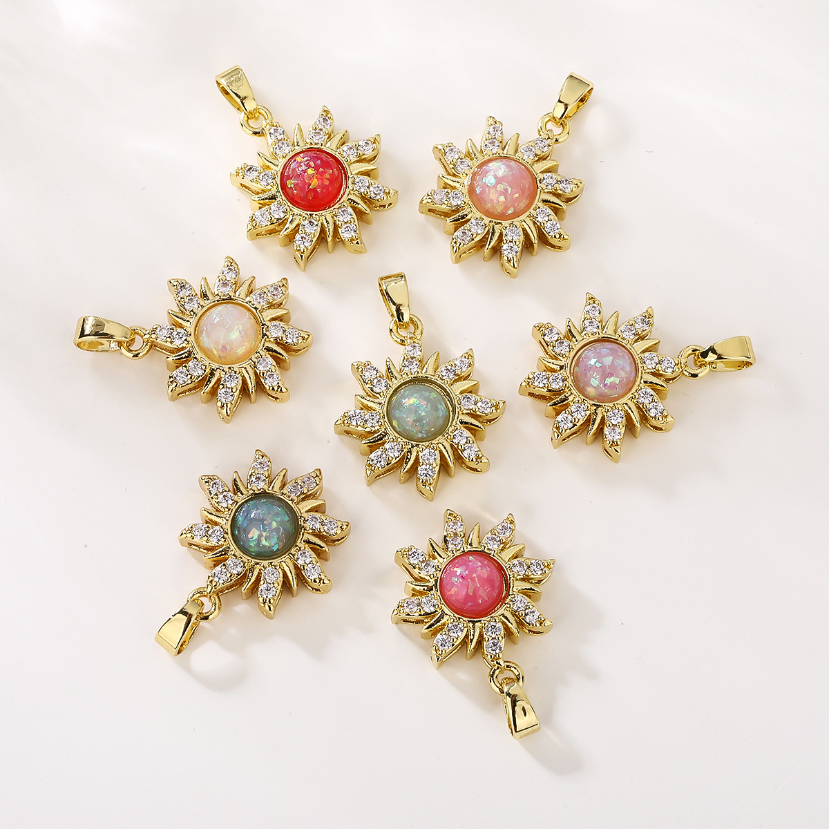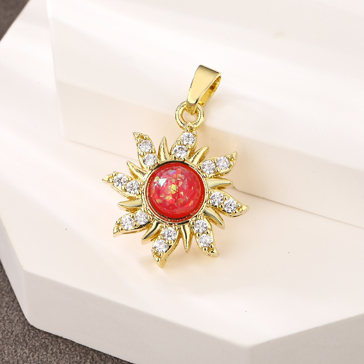 Pendentifs en laiton zircon cubique (CZ), avec zircon cubique, soleil, Placage de couleur d'or, DIY, plus de couleurs à choisir, 14x17mm, Vendu par PC