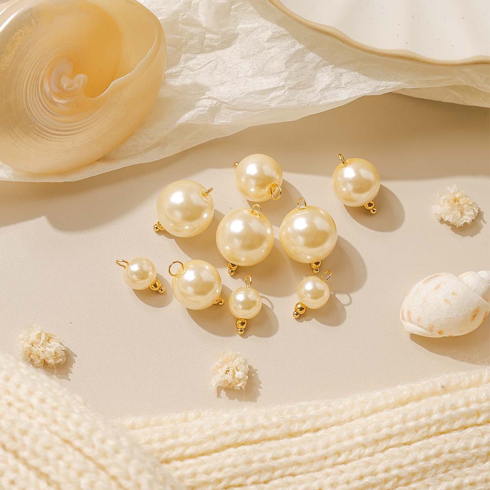Pendentifs en plastique de couleur opaque, Acier inoxydable 304, avec perle de plastique, Placage de couleur d'or, DIY, plus de couleurs à choisir, 10PC/sac, Vendu par sac