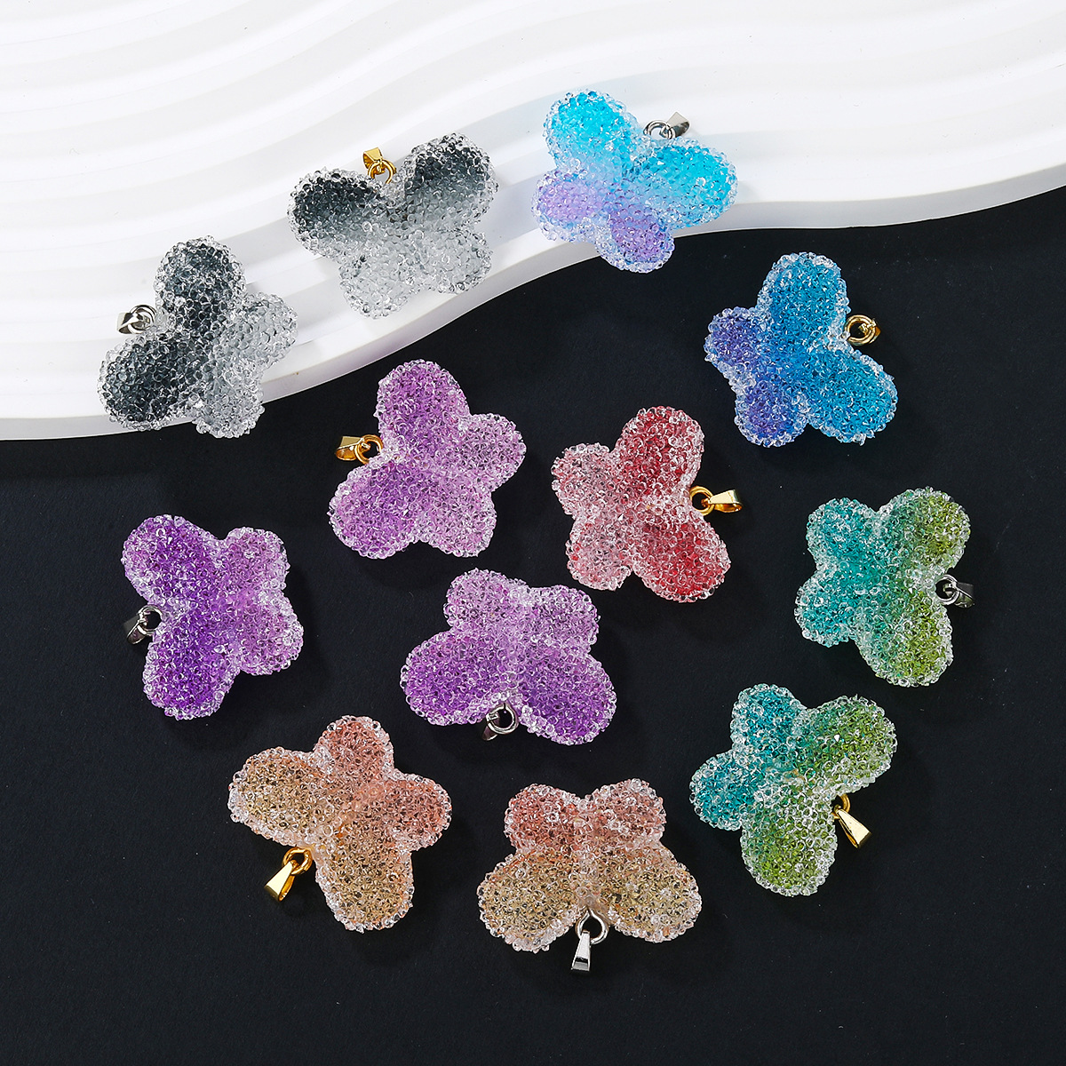 Pendentifs en résine de stras, papillon, Placage, DIY, plus de couleurs à choisir, 30x30mm, Vendu par PC
