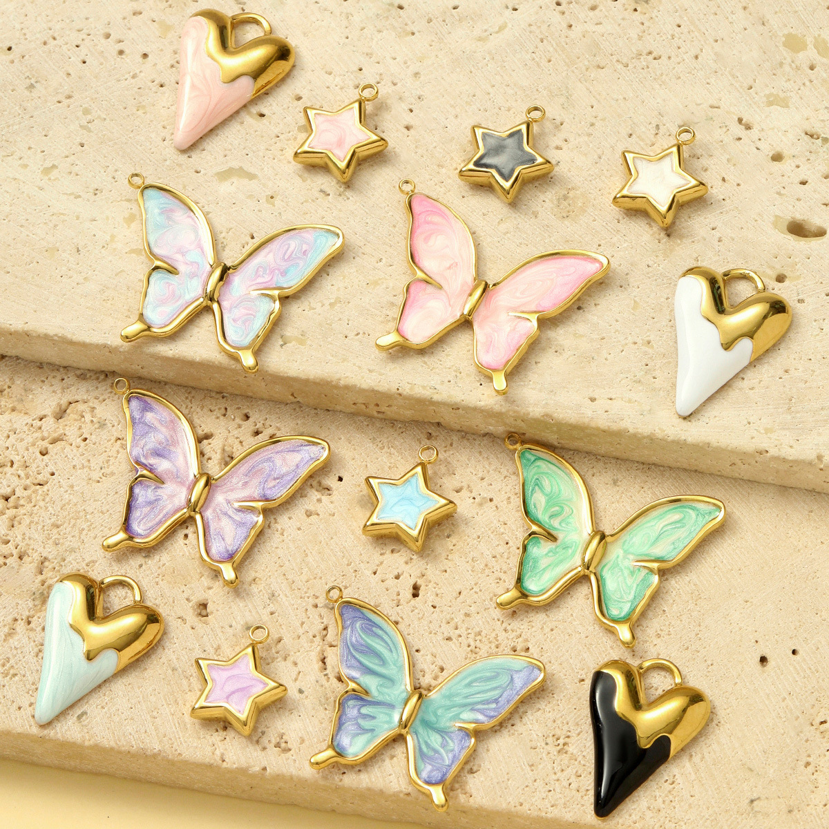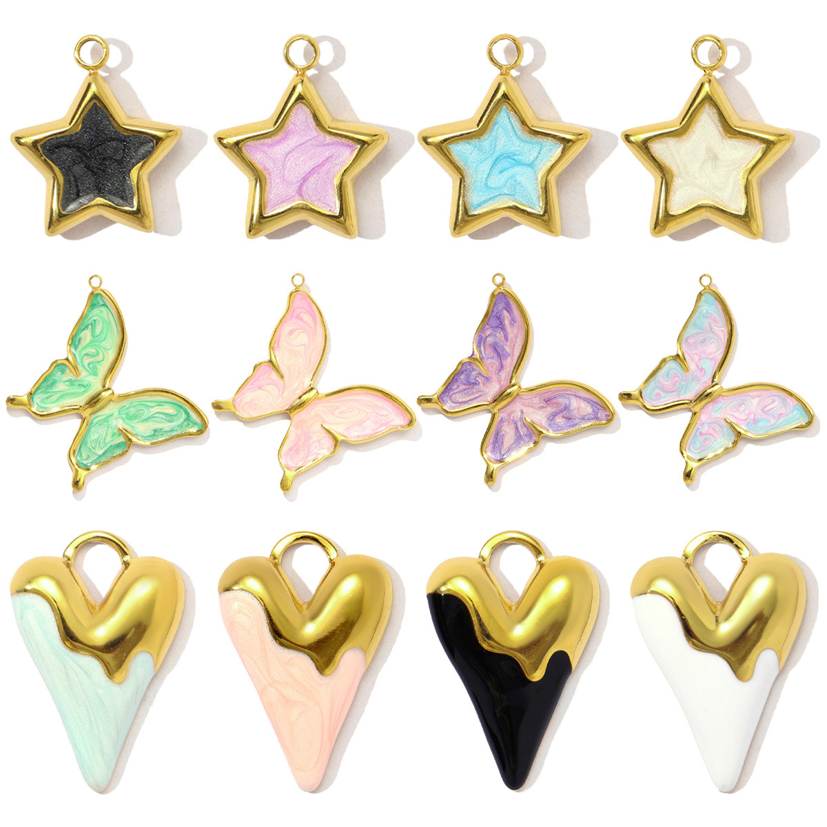 Pendentifs en titane, Acier titane, Placage de couleur d'or, DIY & styles différents pour le choix & émail, plus de couleurs à choisir, 3PC/sac, Vendu par sac