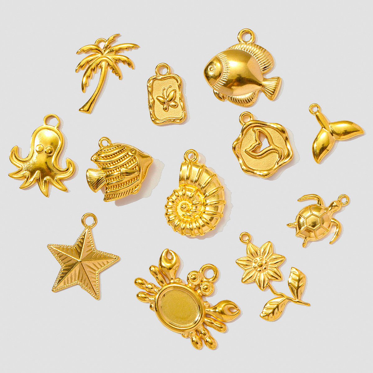 Pendentifs en titane, Acier titane, Placage de couleur d'or, DIY, doré, 10PC/sac, Vendu par sac